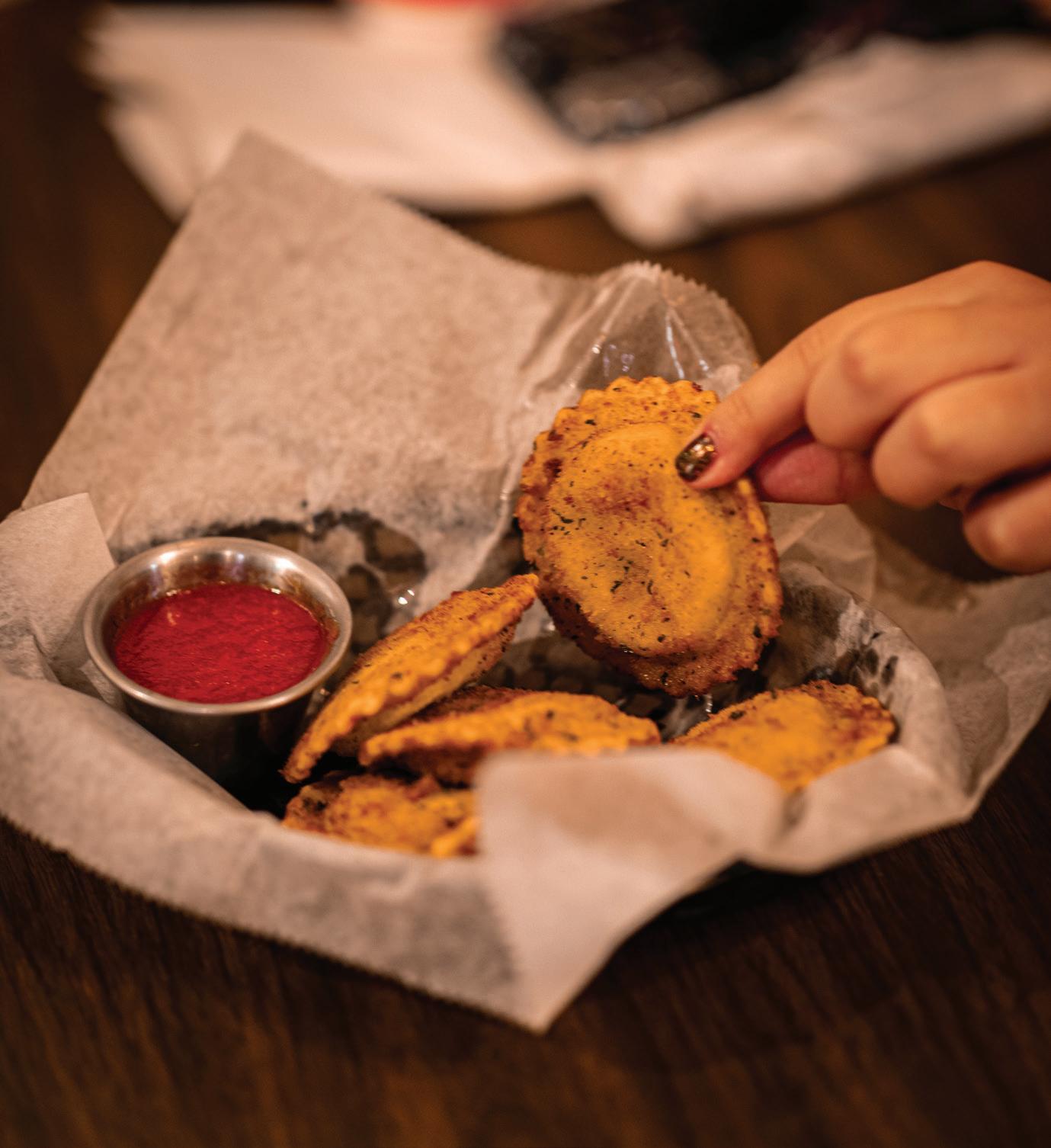 is local fav is smack dab in the center of Mainstreet downtown. is contemporary classic serves up Italian inspired cuisine, so everything feels like a fresh take on all your favorites. We got the frittis as an appetizer, which were fried dough balls stu ed with mozzarella, topped with powdered sugar, and served with marinara. It sounds funky, and it is, but it’s also insanely delicious. Each bite had the perfect balance of sweet and savoriness, plus crunchy and gooeyness.