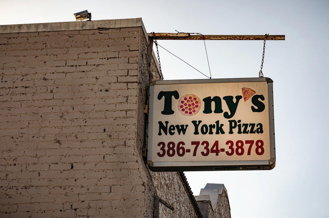 Planted on a prime corner in downtown DeLand sits this absolute cult classic. is one’s an all arounder folks—it’s within walking distance of campus, their portions are generous, the sta are friendly, the ambiance is inviting, and at $11.99 for a 14 inch cheese pizza, it’s also the cheapest option on our list. But the biggest thing that set’s Tony’s apart from the competition is the quality of the pizza itself. is was by far the tastiest of the three; it had the most avor due to its sweet yet savory sauce, and it had plenty of cheese without being too salty. e crust was crispy and crunchy, so it didn’t op over limply when trying to eat it.