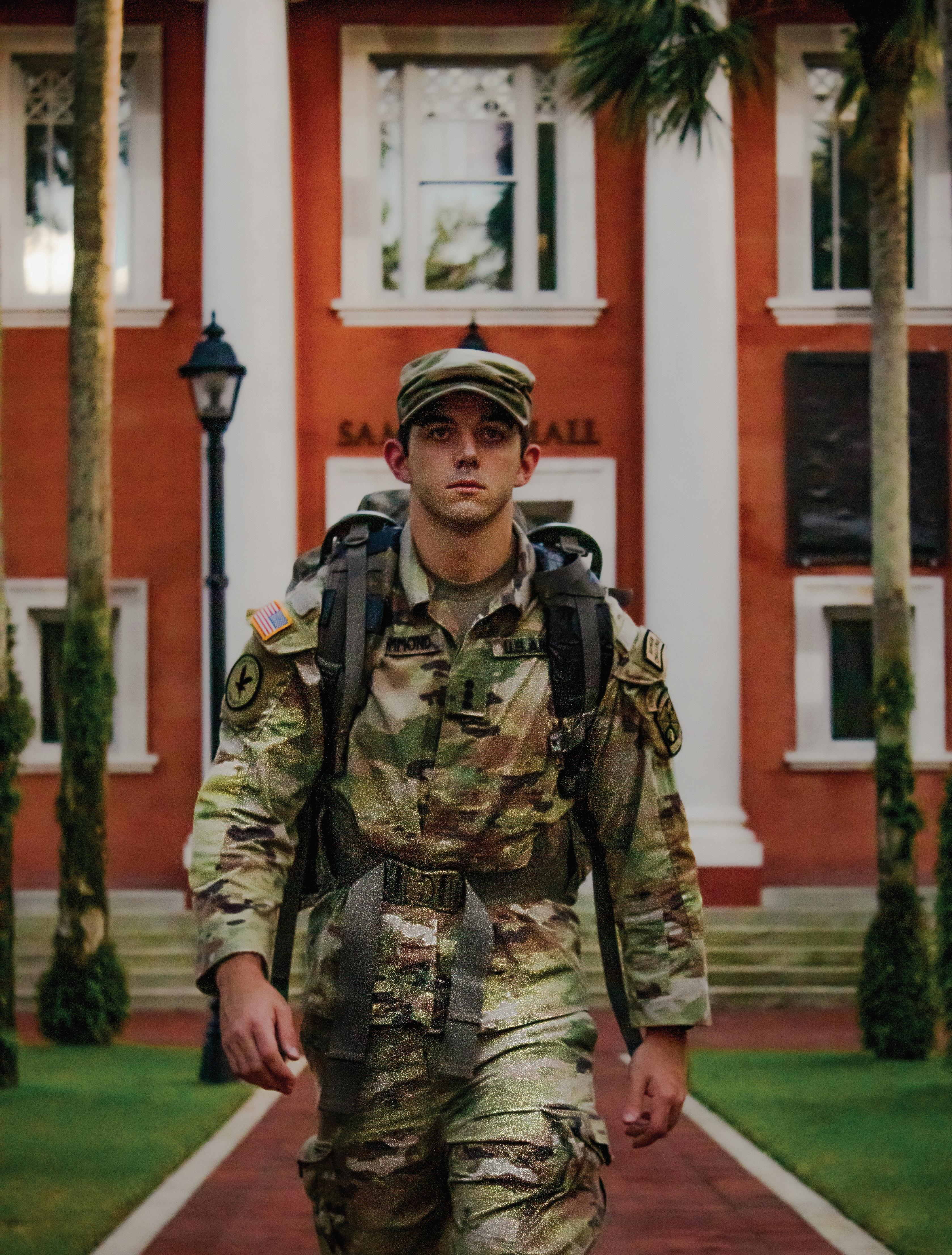 through the essential items he brings with him on a Field Training Exercise (FTX). FTX is a weekend long coordinated training exercise conducted at the end of every semester. Cadets implement lessons learned in their military science class that include conducting squad and platoon level operations in a tactical environment. These training sessions prepare cadets for advanced camp held in Fort Knox, Kentucky where cadet’s are graded on their potential to serve in the Army as a commissioned officer.