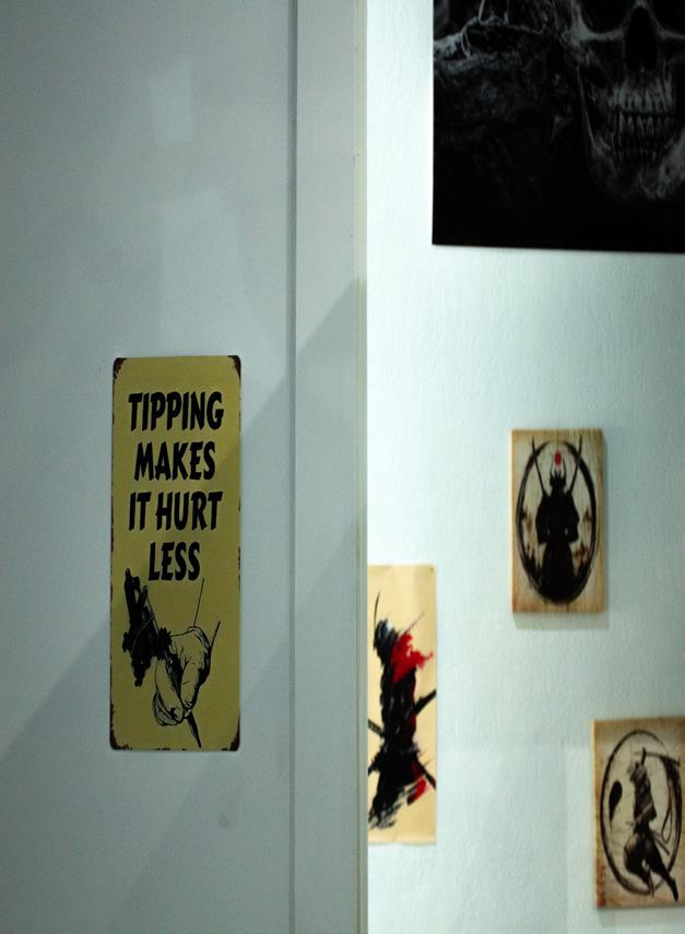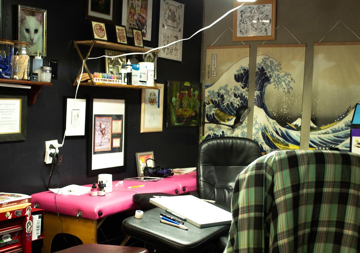 atmosphere for customers. He lets customers choose music to listen to or something to watch on TV, for those who need a distraction from the pain of a tattoo or simply a form of entertainment.