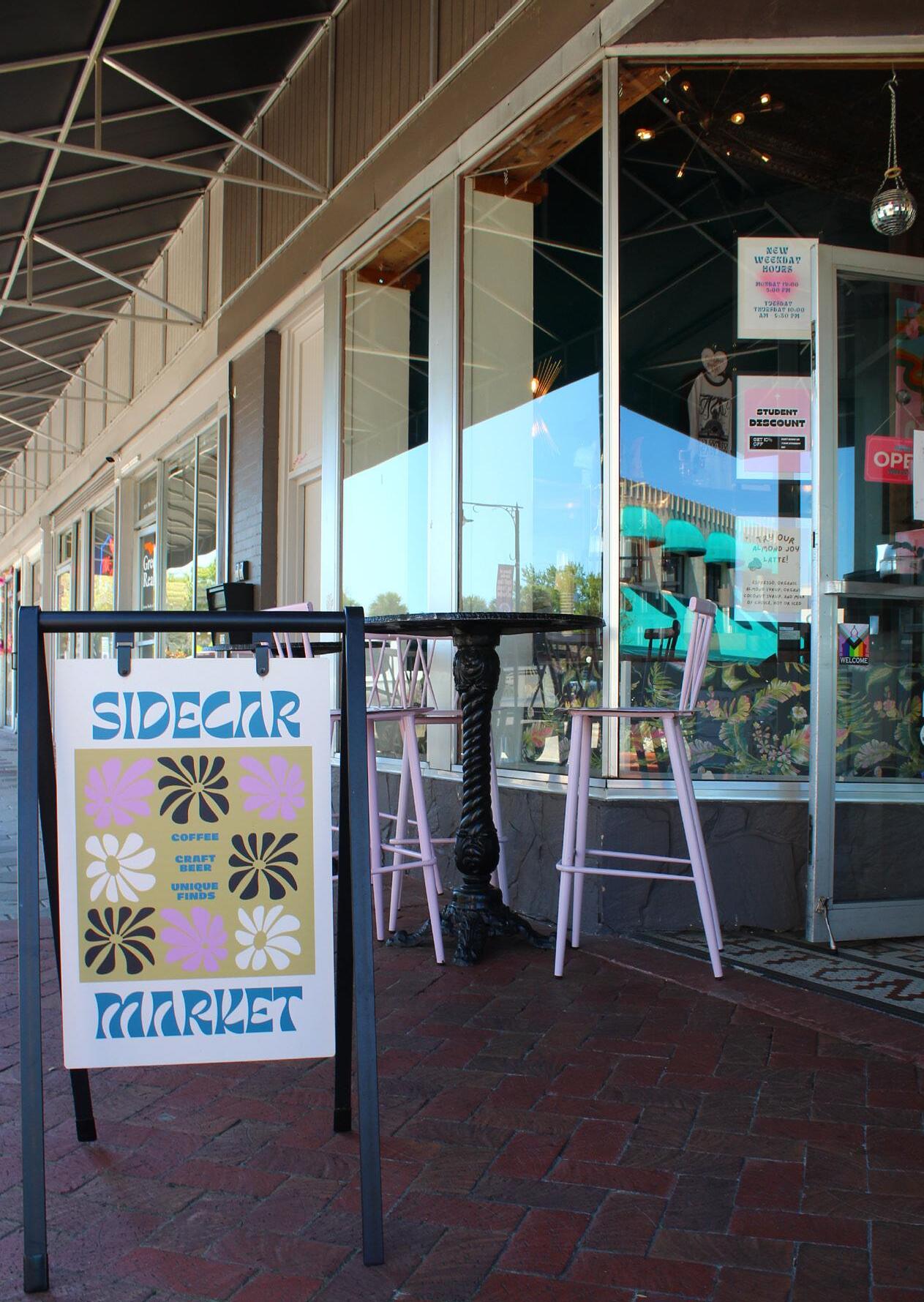 The shop has a vibrant urban design. The brick exterior calls to the downtown environment, while the open interior combines sleek hardwood floors, plush couches and black ceilings with yellow walls covered by colorful art. The art covering the walls is by local artists of central Florida and is all for sale.