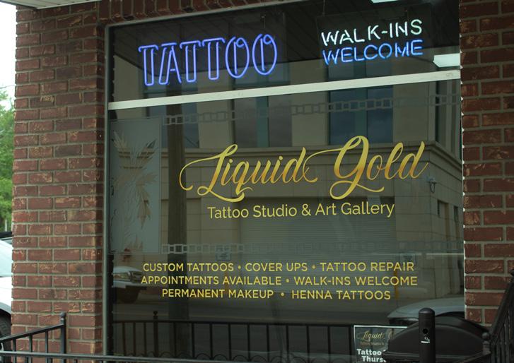 Liquid Gold Tattoo is open seven days a week from noon to midnight, about an eight-minute walk from campus.