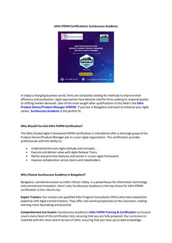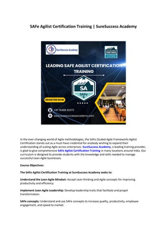 SureSuccess is a well-recognized Agile and SAFe solution provider which provides the training, consulting and coaching with real-world experiences and case studies to enhance the learning experience. It helps the organization in digital transformation.