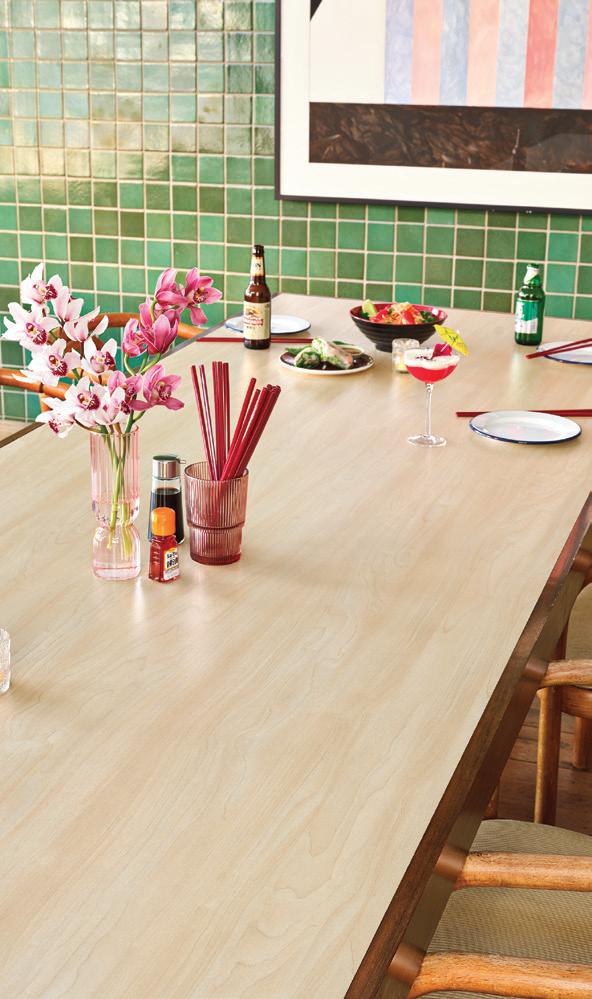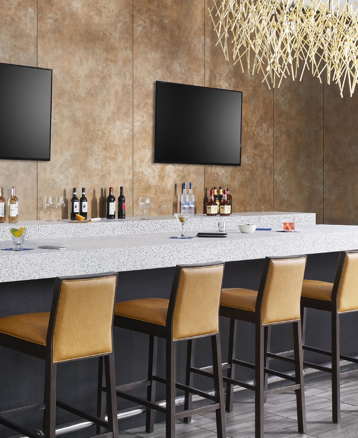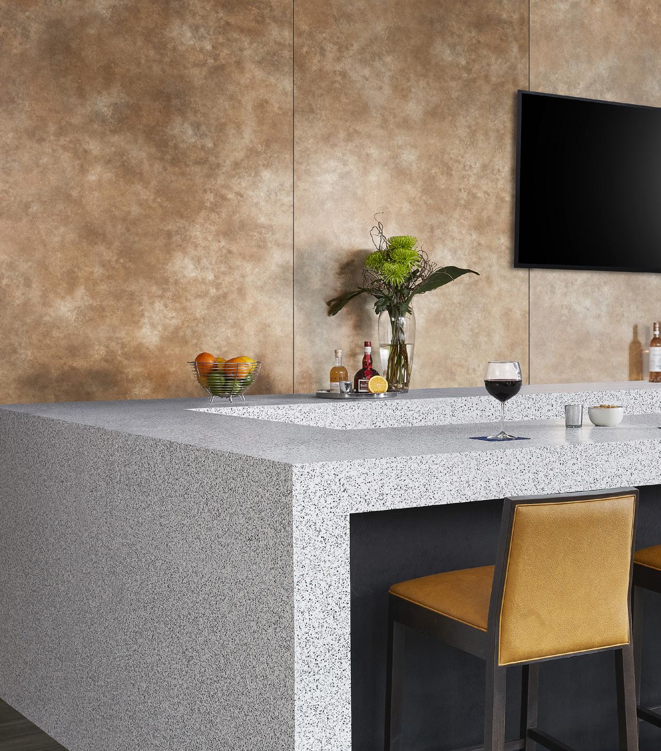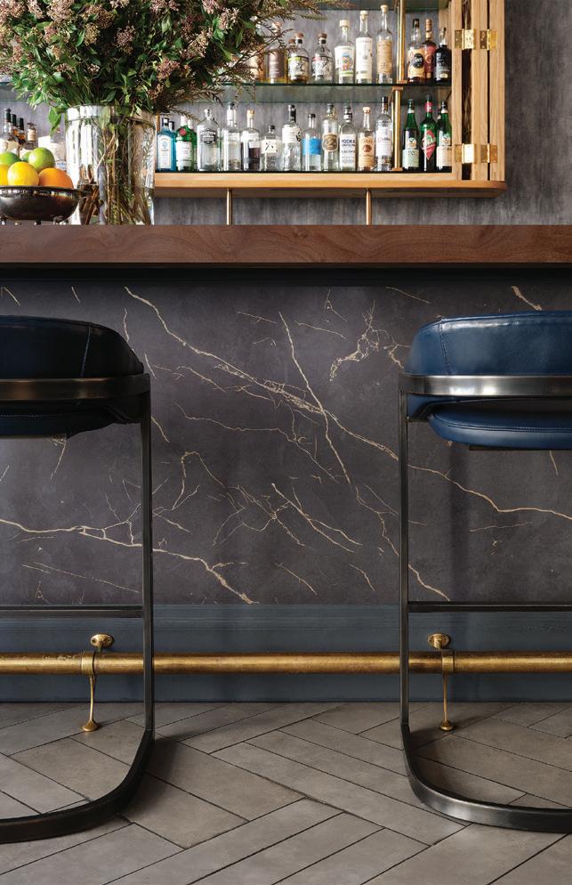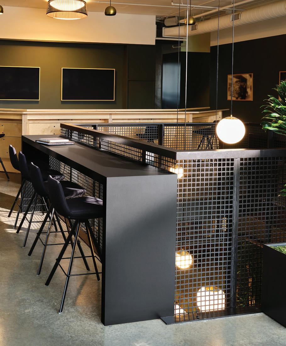 ON THE COVER: Decorative metal laminates and solid metals offer elevated options for designers. This industrial look was created using Nero Ingo FENIX Innovative Materials on the tabletop paired with Black Brushed Aluminum Homapal Metal Laminate sides. Photo courtesy of Formica