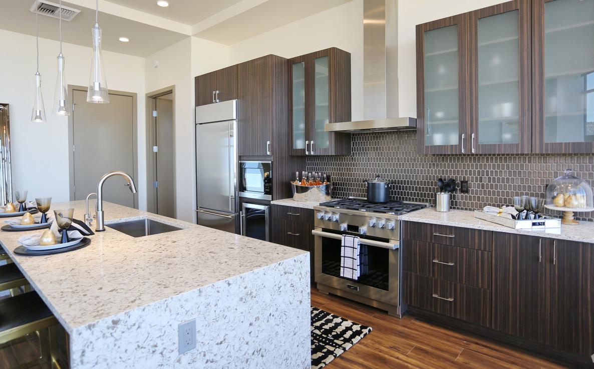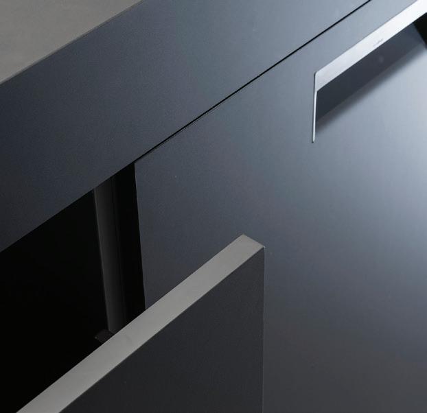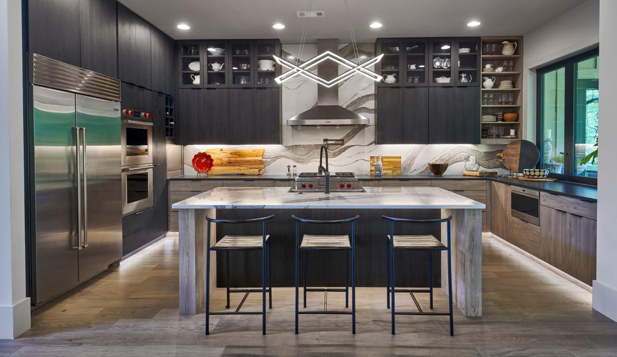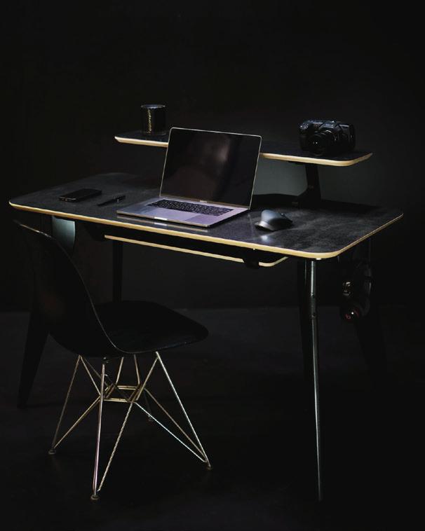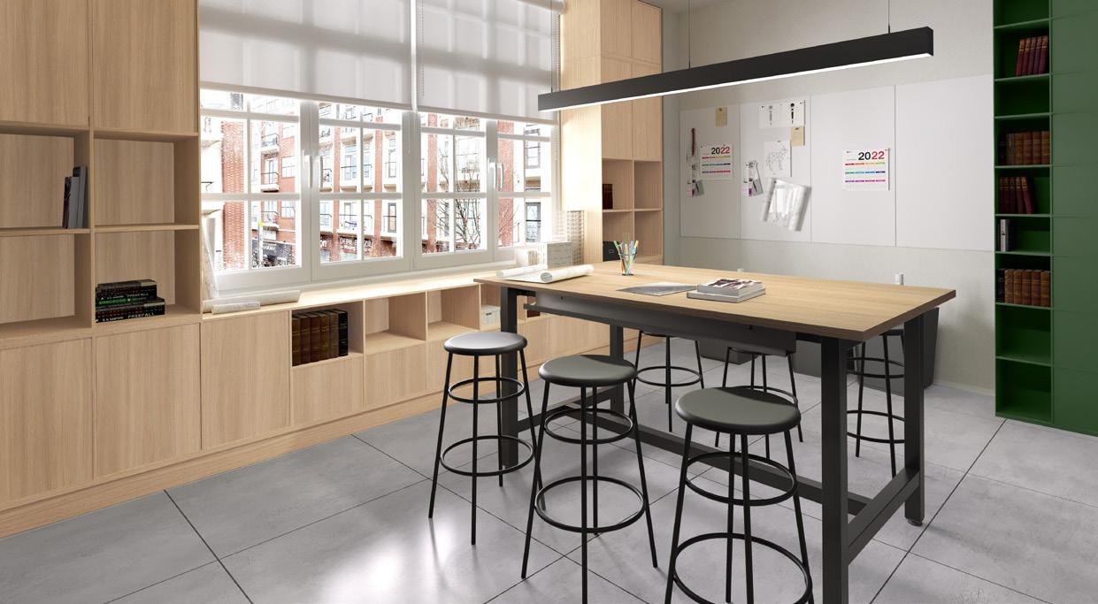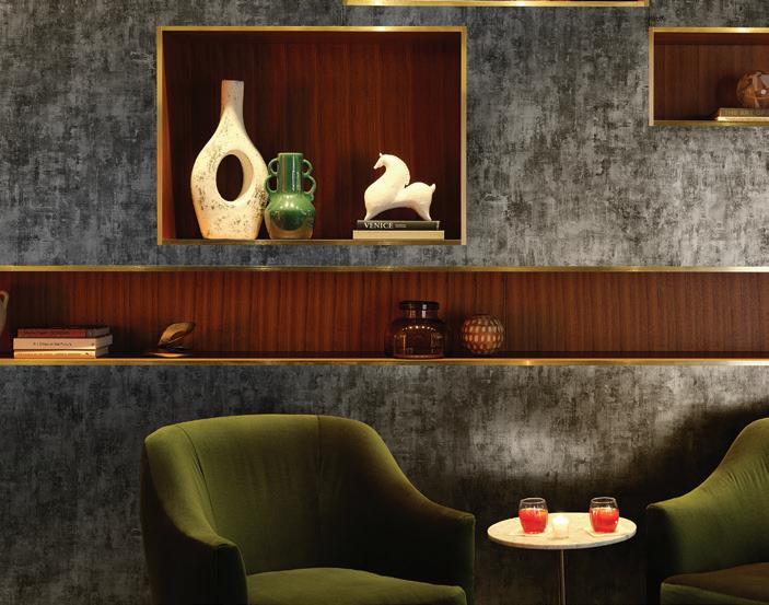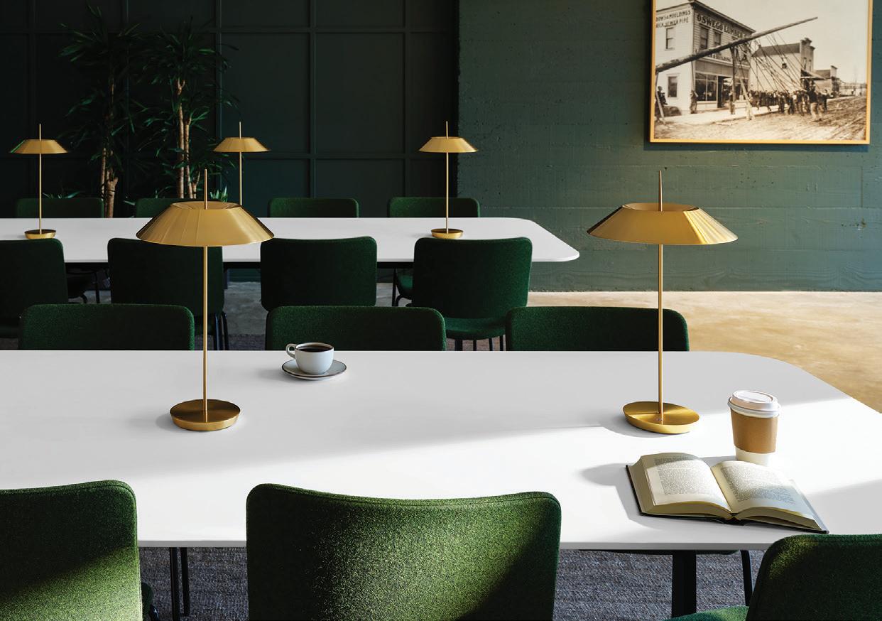 ON THE COVER: Decorative metal laminates and solid metals offer elevated options for designers. This industrial look was created using Nero Ingo FENIX Innovative Materials on the tabletop paired with Black Brushed Aluminum Homapal Metal Laminate sides. Photo courtesy of Formica