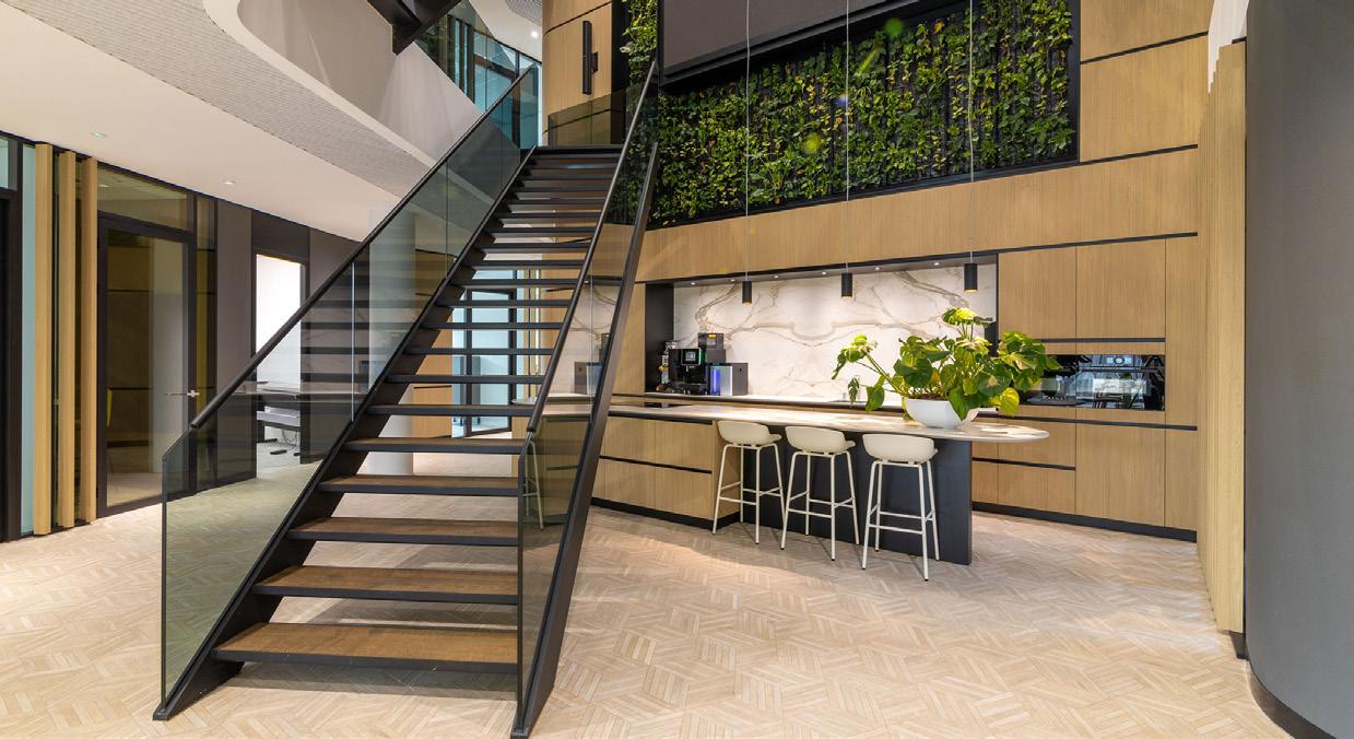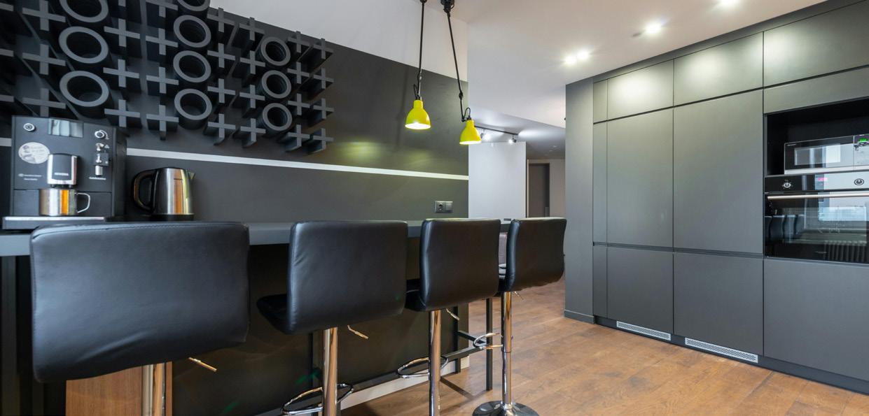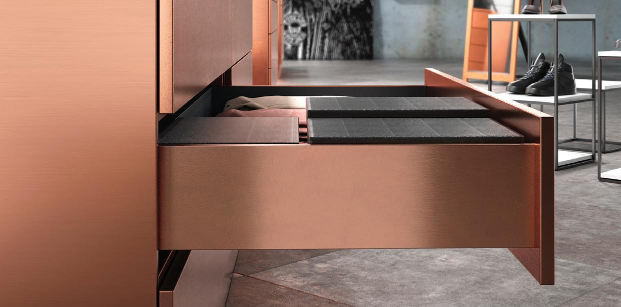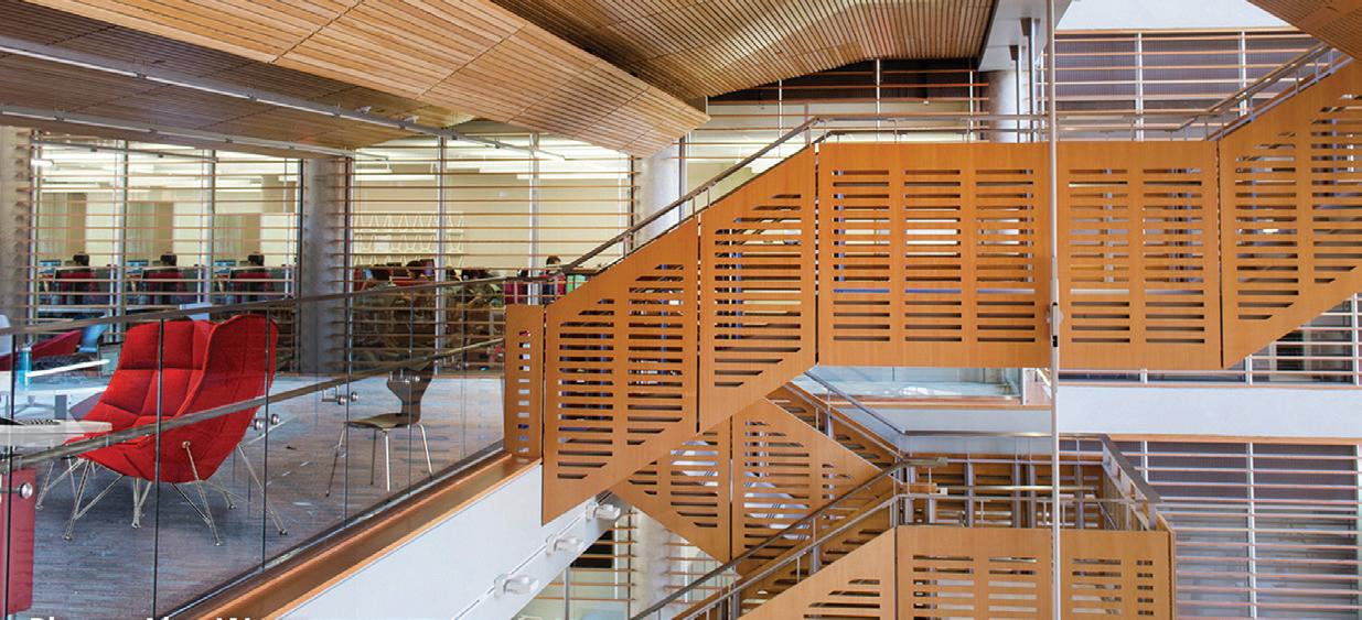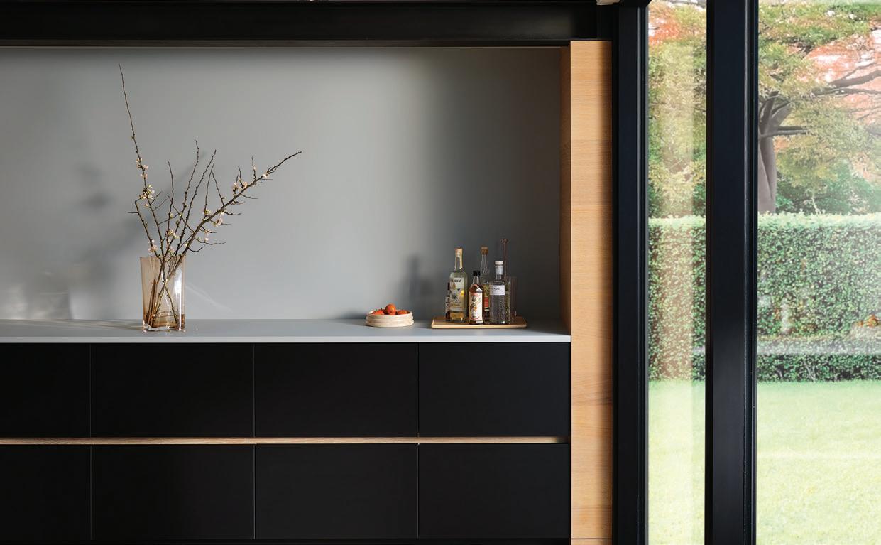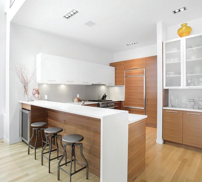 ON THE COVER: Decorative metal laminates and solid metals offer elevated options for designers. This industrial look was created using Nero Ingo FENIX Innovative Materials on the tabletop paired with Black Brushed Aluminum Homapal Metal Laminate sides. Photo courtesy of Formica
