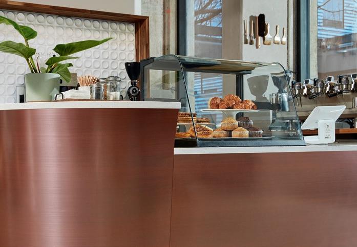 AFFORDABLE LUXURY From our experience at Formica Corporation, we’ve found that during times of economic uncertainty, people may look to save money, but treating yourself is never more valued. We’ve found finishes that are lower-investment—but still feel luxe—come to the forefront of design plans. One example is our DecoMetal line that was recently expanded with seven new designs. These decorative metal laminates have a highend look that can create real statement moments in commercial environments, yet they’re much more affordable than other metal alternatives. Offering a range of products like this during an economic downturn can hit just the right balance for customer needs.