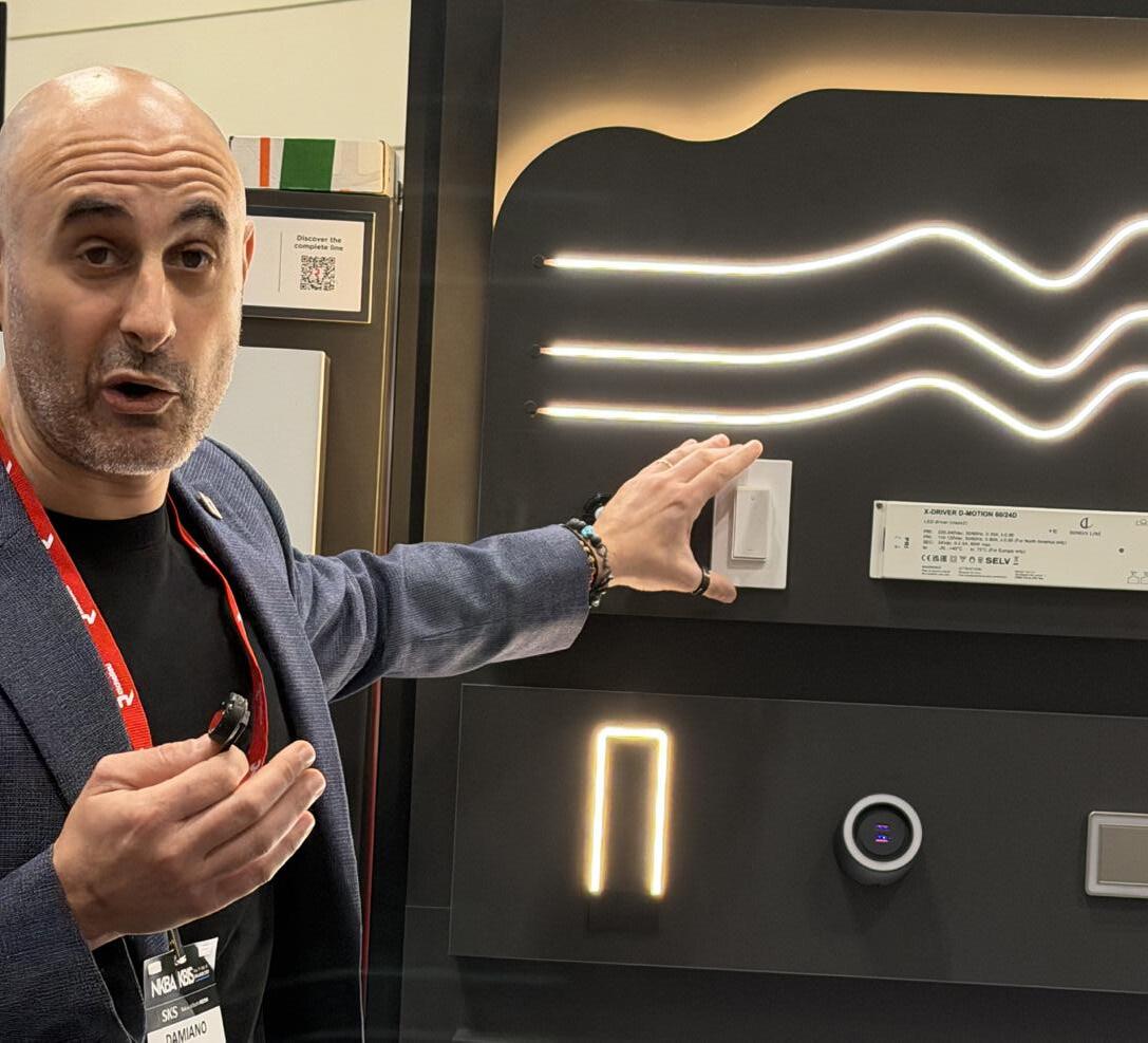 Richelieu’s Damiano Saracino shows the various lighting options available from the company at KBIS 2026.