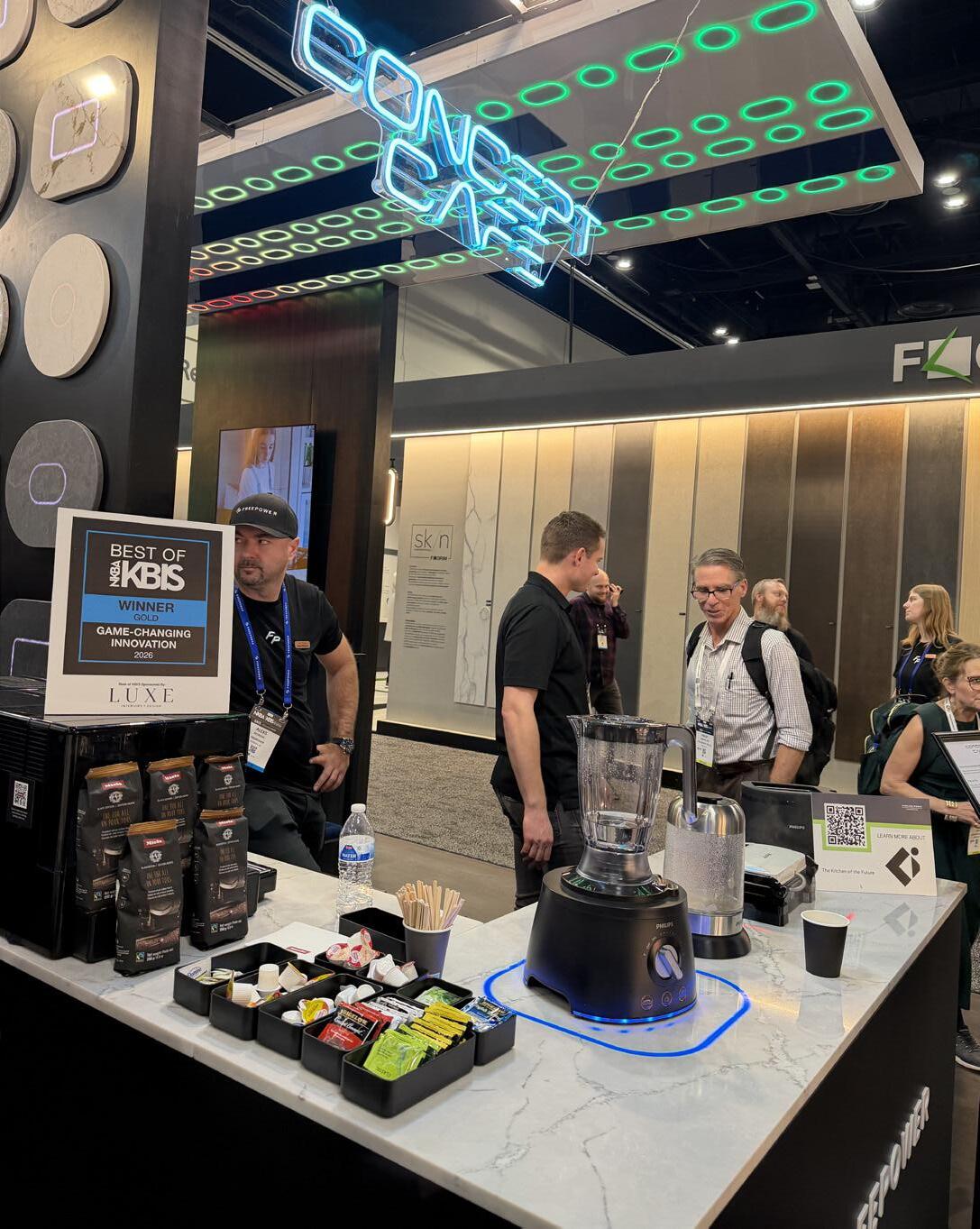 FreePower also showcased an innovative collaboration with Fabuwood, the InFocus Drawer (a semifinalist in the same GameChamging category), and an impressive prototype for the next level of countertop power in their Concept Café, where they demonstrated wireless appliances in action.