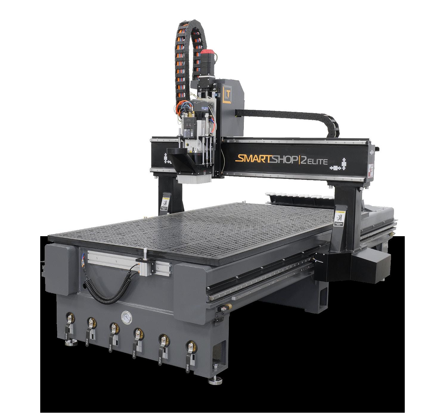 When your work revolves around sheets and panels, precision and speed can’t be optional. The SmartShop® 2 Elite pairs a 12HP HSD spindle (5,000–24,000 RPM) with a multi-zone universal vacuum table to keep full sheets flat, secure, and perfectly registered from the first cut to the last. Helical X/Y rack and pinion drive delivers smooth, accurate motion across the entire table, ideal for nested-based manufacturing and repeatable panel processing. With an 8-position automatic tool changer, you can move from drilling to cutting to profiling without breaking workflow.