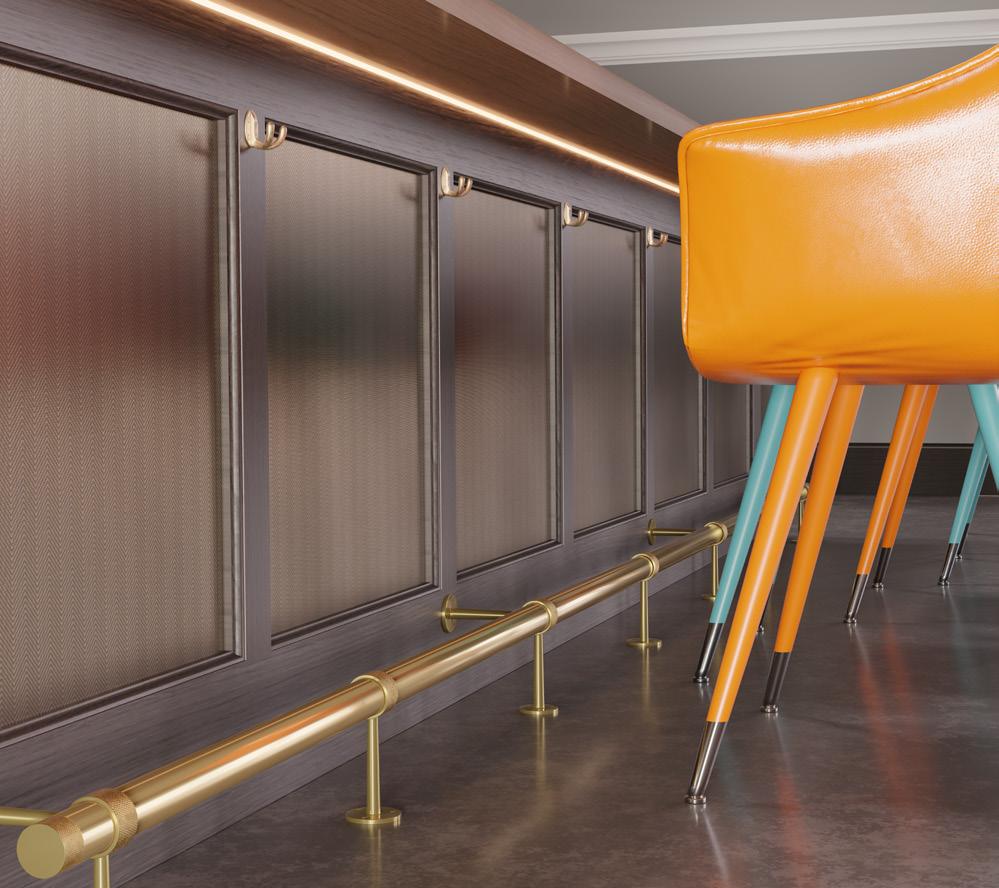 Our Flexible Tambour bends to your radius. Chevron Italian Mesh integrates seamlessly into panel applications. And our award-winning NEW Brass Foot Rail system installs cleanly for commercial or residential use.