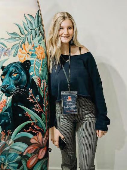 She was born in San Clemente, California and she’s been making art for as long as she can remember. From miniature surfboards to canvas paper, sculptures and paintings.