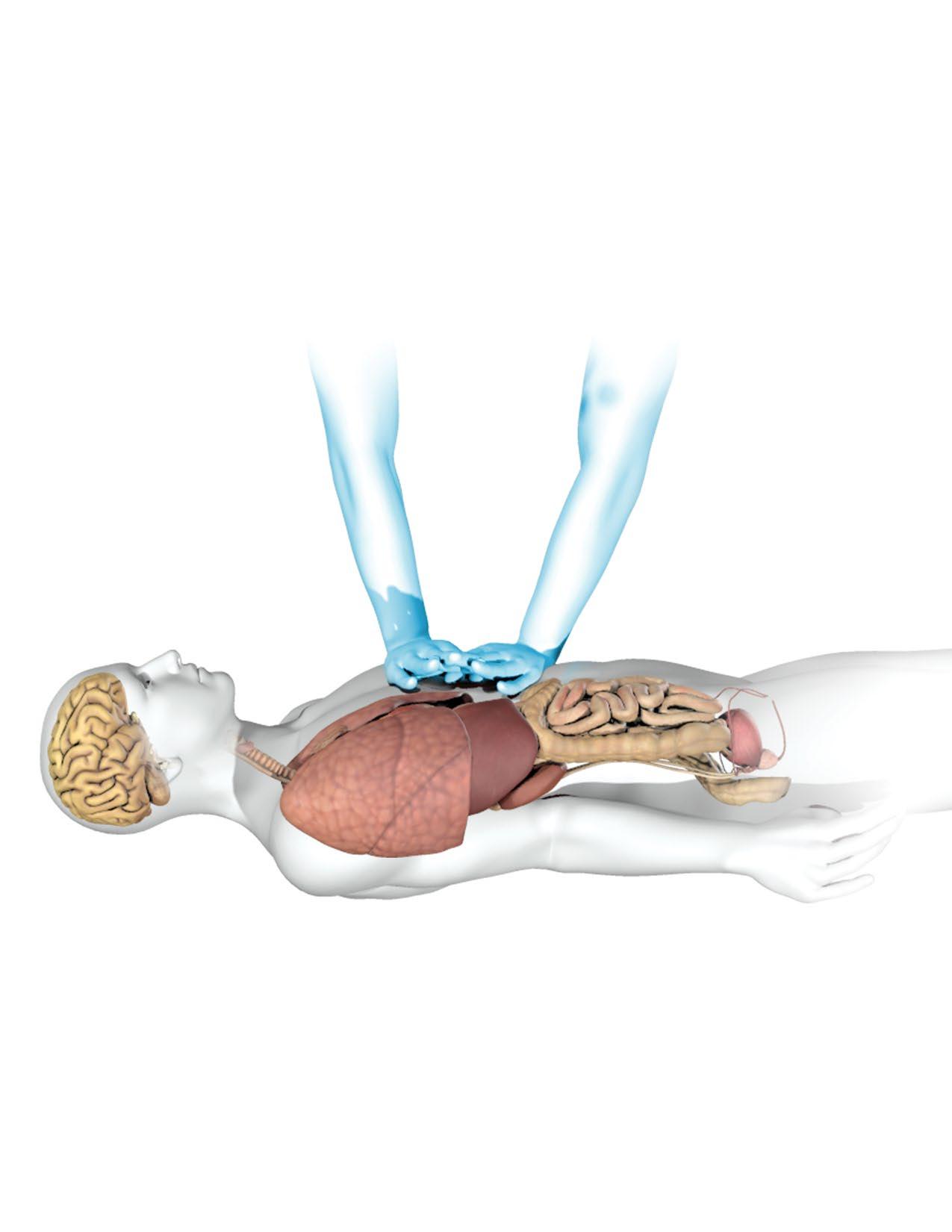 Alterne 30 comprensiones y 2 insuflaciones, a un ritmo de 100 comprensiones por minuto.