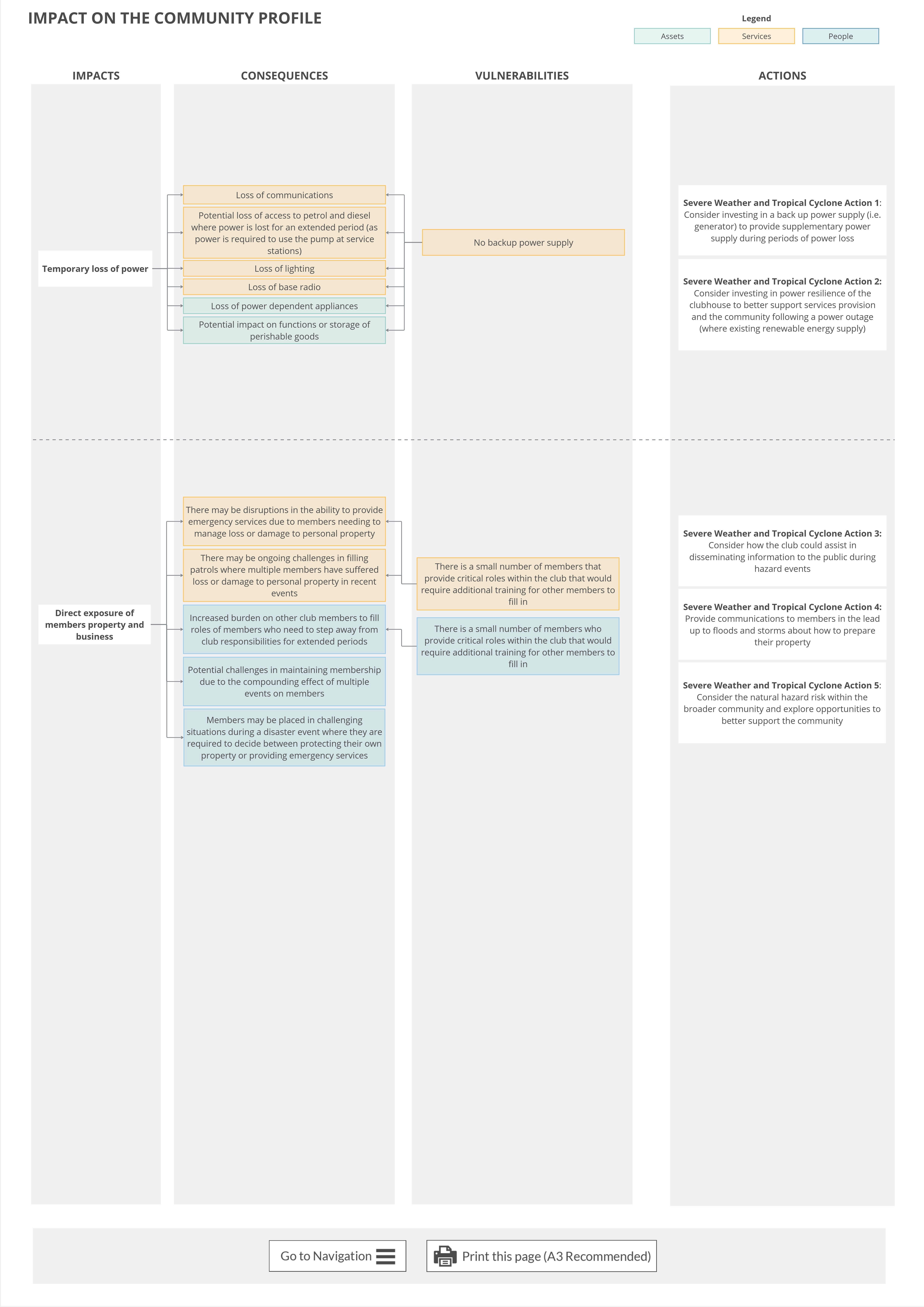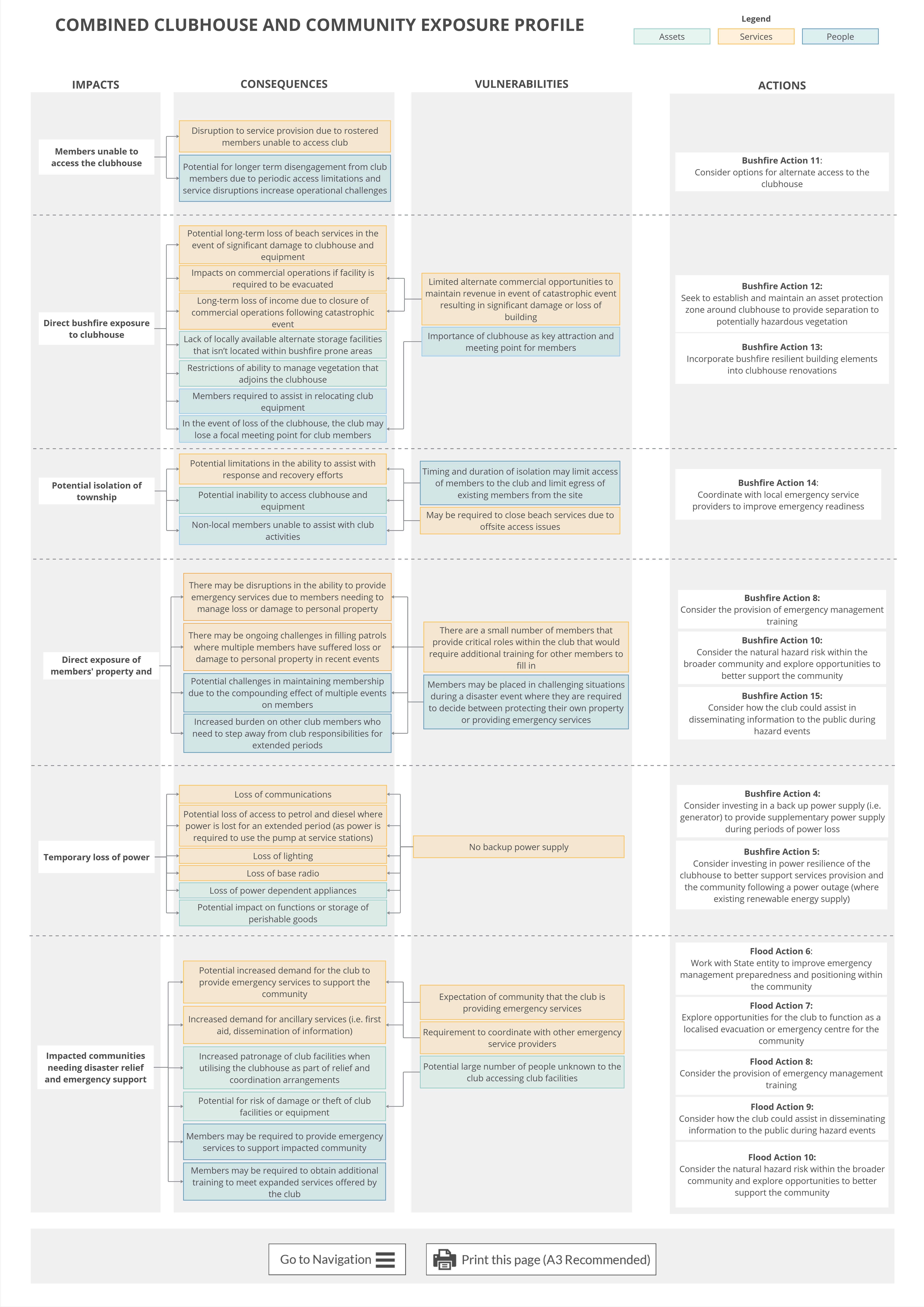 It was identified that there is a high indirect natural risk within the community. While the clubhouse might not be directly at risk, the club should consider the risk within the community and explore opportunities to provide support to resident who might be impacted directly.