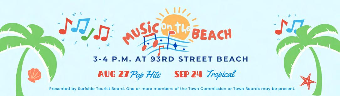 3 3 4-5 6 town manager’s message commission accomplishments remembrance event commission in action meetings & events 08/02/23 Special Commission Meeting | 5 PM 08/02/23 Blood Drive | 11 AM 08/03/23 Bid Opening RFP 2023-03 Tourist Boar d Special Events Consultant | 11 AM 08/03/23 Pension B oard Meeting | 1 PM 08/03/23 Bid Opening RFQ 2023-02 Design Services for the S urfside Memorial | 2PM 08/06/23 Summer S undays - August | 4 PM 08/07/23 Tourist B oard Meeting | 5:30 PM 08/08/23 Commission M eeting | 6 PM 08/16/23 Special M aster Hearing | 10 AM 08/19/23 Blood and P latelets Drive | 11 AM 08/21/23 Parks & Recreation Committee Meeting | 5:30 P M 08/27/23 Music on the B each: Pop Hits | 3 PM 08/30/23 Condo Connect - 2023: Shaping the Futur e of Condo Living | 12 PM 08/31/23 Planning & Zoning Board Meeting | 6 PM