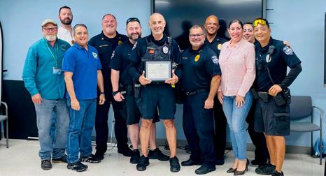 Accepting the proclamation alongside Mayor Danzinger and members of the Commission were Surfside Police officers, staff, representatives from Miami-Dade Fire Rescue, Israeli Consul General Maor Elbaz-Starinsky, spiritual leader Rabbi Sholom Lispkar from the Shul, and Rabbi Zalman Lipskar, who serves as both a Rabbi in the community and as Surfside’s Chaplain.