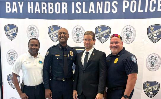 Town Mayor Shlomo Danzinger was joined by Surfside Police Captain Marciante and Head Parking Officer Joseph at the swearing in ceremony of Chief Noel, Bay Harbor Islands’ new Chief of Police.