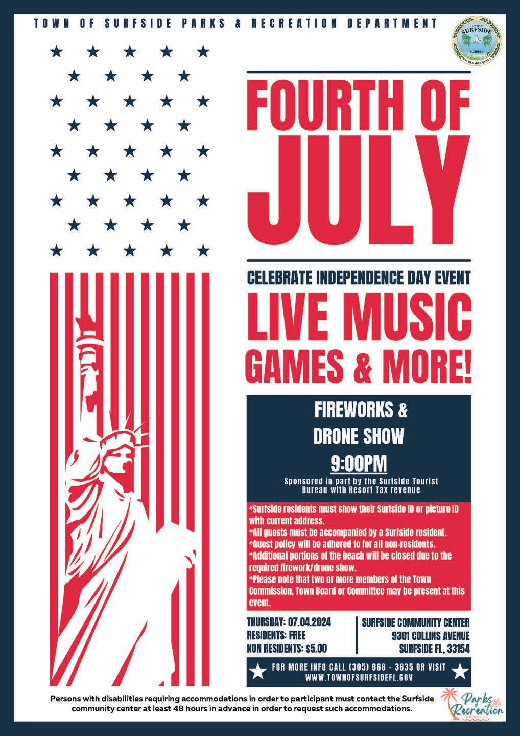 As we approach the Fourth of July, Independence Day, I encourage you all to join me and celebrate with your families for the all-day Parks & Recreation event as well as Summer Sundays, later that weekend on Sunday, July 7!