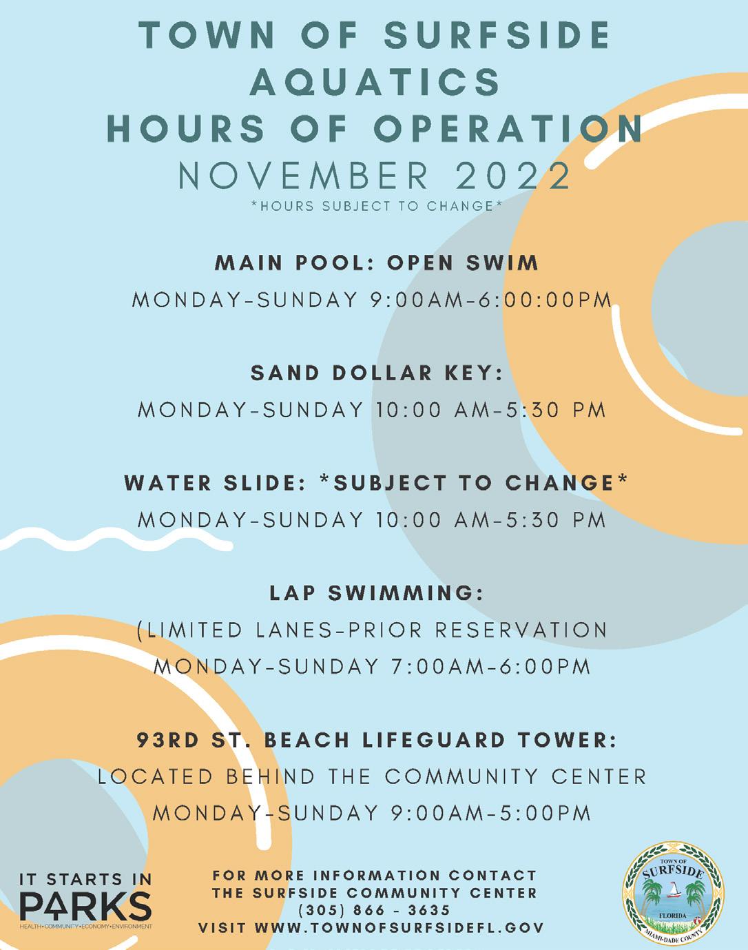 The events are set to start at 3:30 p.m. The Music on the Beach series is free and open to the public. Attendees are encouraged to bring beach chairs, mats or blankets. Limited seating will be available for persons with disabilities or for the elderly on a first-come, first-serve basis. To request a seat, please email ftrigueros@townofsurfsidefl.gov.