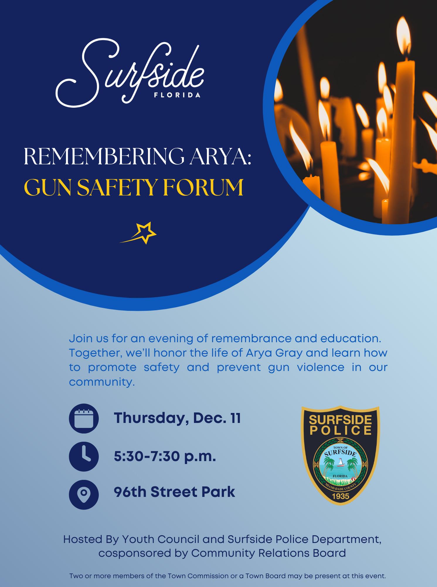 On a more somber note, on the evening of December 11th the Town will be organizing a forum on gun safety, organized by our Youth Council and the Community Relations Board, and by resident Hilary Feldman, who brought the idea for the event to both boards. The forum will be dedicated to the memory of Surfside resident Arya Gray, who died in a gun accident in 2020. I am glad that the Town can honor Arya’s memory by working to build a safer Surfside, and I’m grateful to Ms. Feldman and to the board members who organized this event.