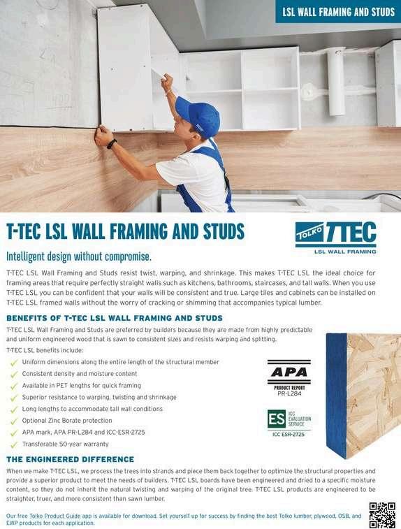 These ZB (Zinc Borate) treated products are approved for use as defined in AWPA U1, Use Category UC2. ZB treatment protects the product from termites and fungal decay without compromising structural integrity or consistency of the product. Each piece of Zinc Borate treated 1.35e T-TEC LSL is individually edge sealed in red for easy identification after installation.