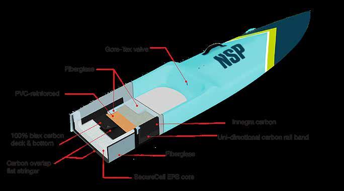 RECESSED DECK RACERS PUMAS BOARDS Fiberglass SecureCell EPS 100%corebiax carbon rail band 100% biax carbon deck & bottom Fiberglass rail reinforcement Uni-directional carbon rail band Gore-Tex valve PVC reinforced standing area Carbon overlap flat stringer