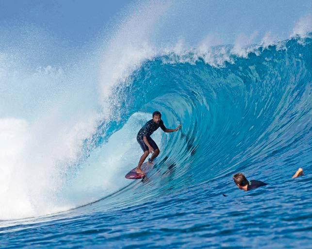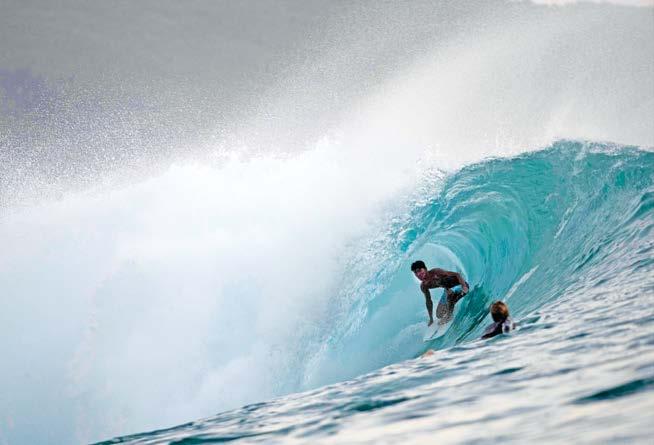Previous Spread: Two aspects of the wild aerials being done these days as interpreted by two of our best locals on the island. Westin Hirst, right, experimenting with height regulations and left, the venerable Ketut Agus, controlling the centrifugal forces that come with such attempts. Like astronauts, both surfers on gravity defying journeys, pushing into the outer limits, ignoring the impossible by instead re-defining that which will become achievable.