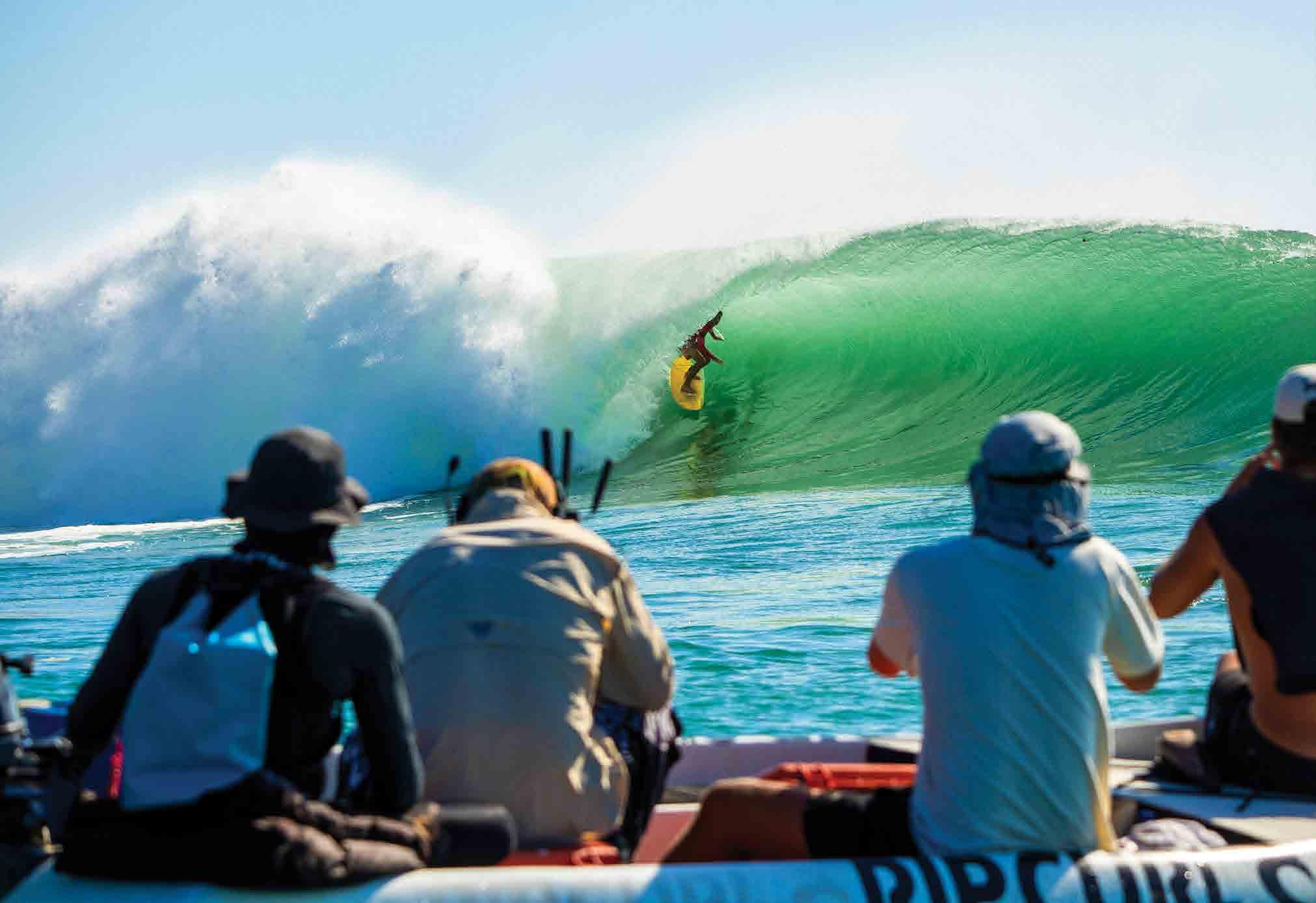 And oh, did the ocean deliver. A monster set closed out the line-up to start the day, sending a jet ski and its driver tumbling like a toy in a washing machine. A raw reminder of who’s boss. Hectic? Sure. But it was a foreshadowing of what mere mortals we were about to witness. One hell of a day of surfing. From sun-up to sundown the Indian Ocean churned out waves that were equal parts beautiful and brutal. Ivan Florence rode the wave of the day, buried so deep that the film crew gave up, only for him to thread a seemingly impossible foamball section and get spit out to a chorus of gasps and cheers. Jim Banks, at 56, surfing like he was half his age, proving time’s just a number when your soul’s tethered to the ocean. It was that kind of day, every heat raising the bar, every set adding to the tension.