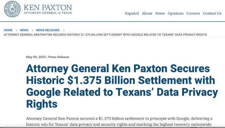 із 40 штатів Google виплатила $ 391 мільйон – у середньому 9,7 мільйона на штат. А тут лише одному Техасу – 1,375 мільярда. До речі, таку ж саму суму,