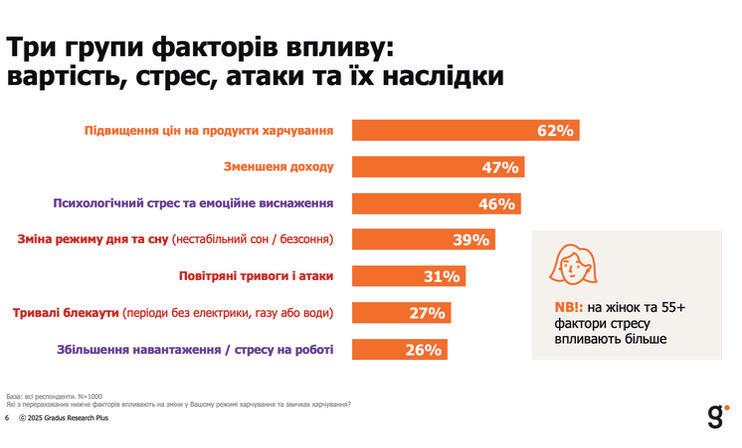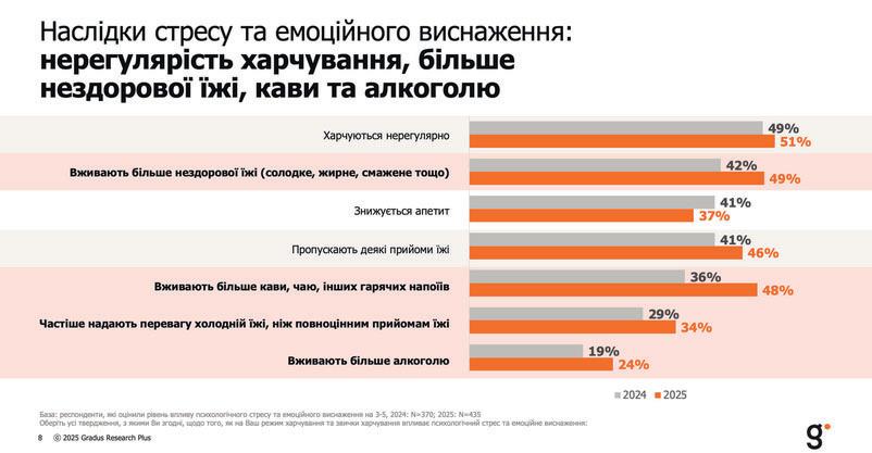 , а частиною механізму виживання Через їжу ми намагаємося впорядкувати життя, знайти стабільність і хоч якусь нормальність у щоденному стресі», – коментує соціолог Євгенія Близнюк, засновниця і директорка Gradus Research. Дослідження