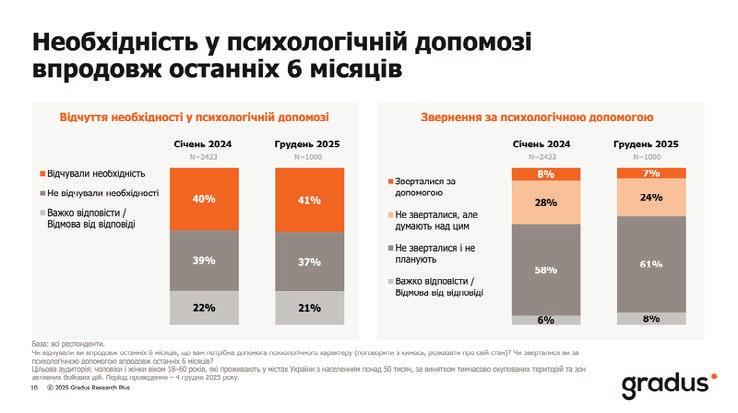 ніх шести місяців необхідність психологічної допомоги відчували 41% українців. Водночас фактичне звер-