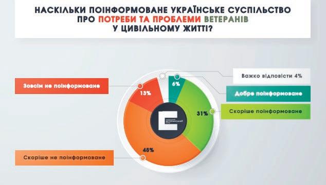 пондентів (58%) вважає, що суспільство не поінформоване про потреби та проблеми ветеранів у цивільному
