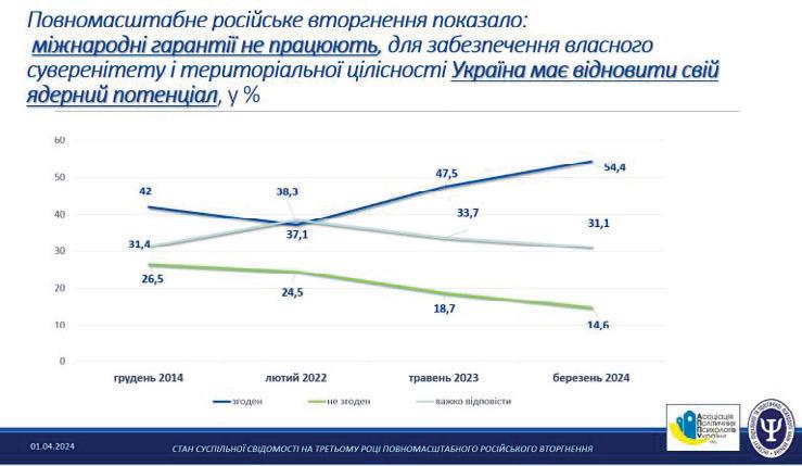вони можуть свідчити про поступовий вихід суспільства зі стану високої психологічної мобілізованості, в якому воно перебувало від початку повномасштабного вторгнення