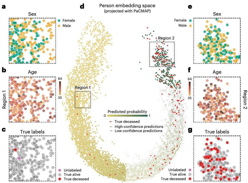 зувати і встановлювати зв ’ язки між життєвими подіями, такими як рівень доходу, освіта або фактори здоров ’ я Ці латентні простори слугують основою для прогнозів, які в результаті робить модель Однією з життєвих подій, яку спрогнозували дослідники, була ймовірність смертності людини. (База даних містить інформацію, що охоплює період з 2008 до 2020 року, хоча «life2vec» використовує дані за період 2008–2016 років, щоб мати можливість передбачити ситуації на наступні чотири роки, а потім перевірити