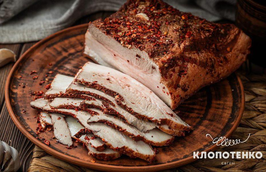 пакованні у холодильнику (за температури не вище 4 градусів Цельсія) до семи діб. Найкраще подавати таке м’ясо холодним, як закуску, нарізавши тонкими (десь із палець товщиною) порційними шматочками або використовувати для канапок. ІНГРЕДІЄНТИ