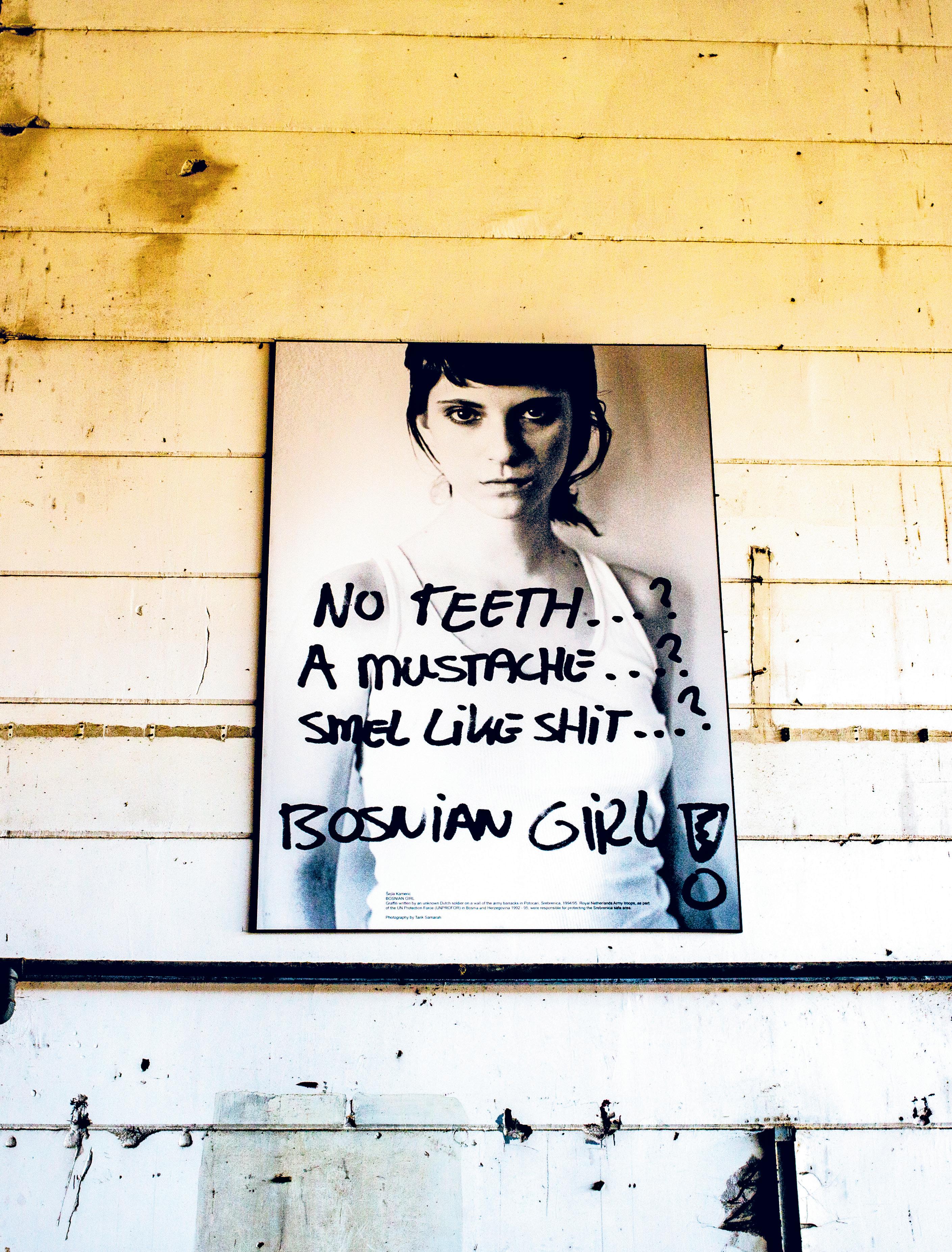 In einer Fabrikhalle, in welche die Männer im Juli 1995 gesperrt wurden, erinnert ein Bild an einen der Getöteten.