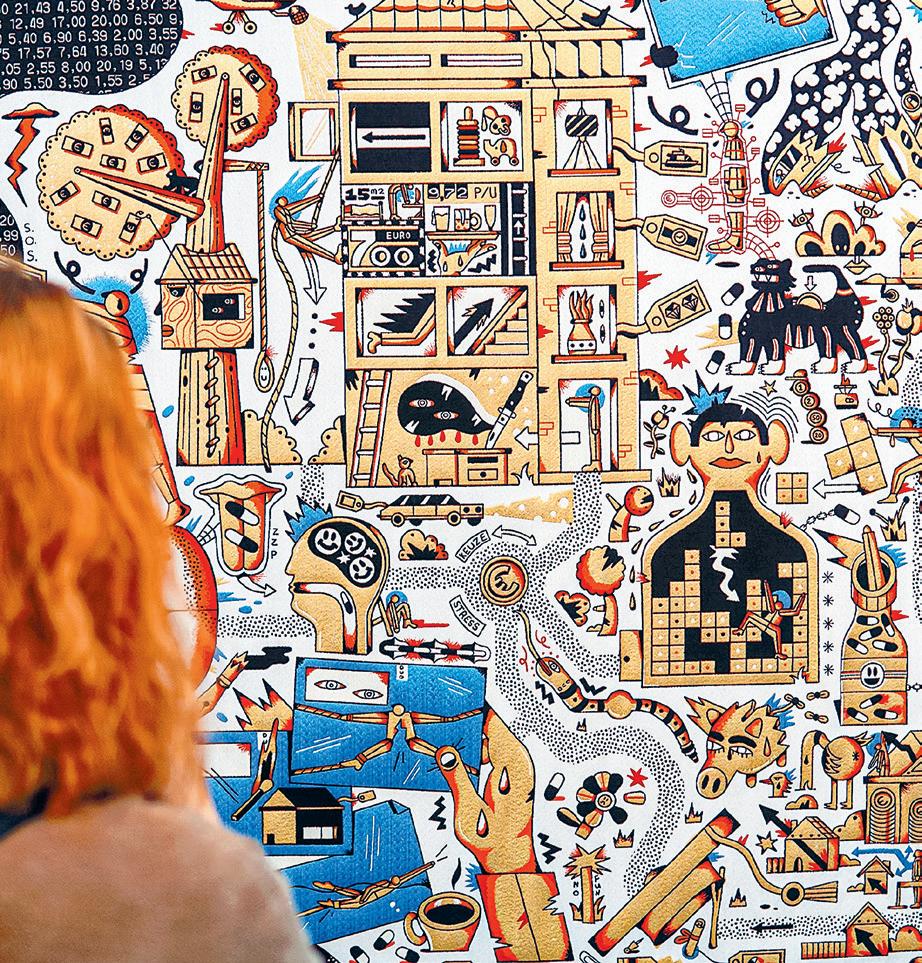 Während seines Studiums an der Kunsthochschule Utrecht sorgte sich der niederländische Künstler Mart Veldhuis um seine Studienschulden. Würde er je in der Lage sein, diesen hohen Kredit zurückzuzahlen? Als Teil seines Abschlussprojekts schuf er einen grossen Wandteppich, seit langem ein Symbol für Macht und Reichtum. Veldhuis webte sein Werk mit Goldfäden und nannte es «Eigene Schuld». Auf beiden Seiten stehen Löwen mit Messern, die auf eine Figur gerichtet sind, sie stellen den verschuldeten Studenten dar. Löwen sind Teil des niederländischen Wappens, hier symbolisieren sie den Staat, der das geliehene Geld zurückzufordert. Veldhuis’ Arbeit erregte landesweit Aufmerksamkeit, er konnte den Teppich für den vollen Betrag seiner Studienschulden verkaufen: 46 000 Euro. Mit einem Partner startete der Künstler in der Folge das Projekt «Andermans Schulden» (Deutsch: «Die Schulden von jemand anderem»). Nach Interviews mit verschuldeten Menschen schufen sie fünf Stücke, die alle eine von finanzieller Not geprägte Lebensgeschichte erzählen. «Wir hoffen, das Tabu rund um Verschuldung zu brechen und die Frage aufzuwerfen: Sind Schulden deine Schuld?», so Veldhuis.