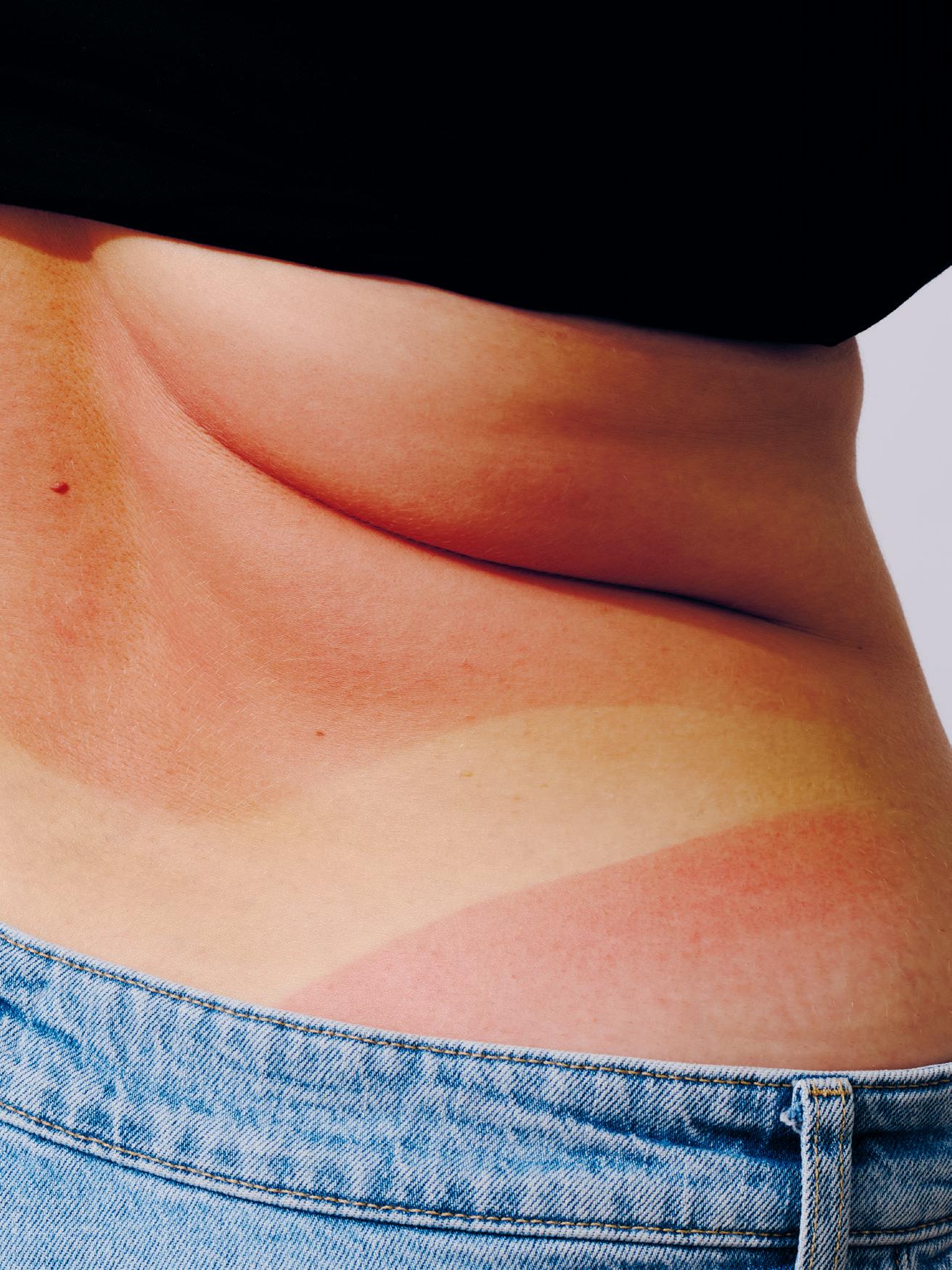 Die gezeigten Fotomodelle wurden keinem gesundheitlichen Risiko ausgesetzt: Die Tanlines und Sonnenbrände wurden für die Fotos aufgeschminkt.