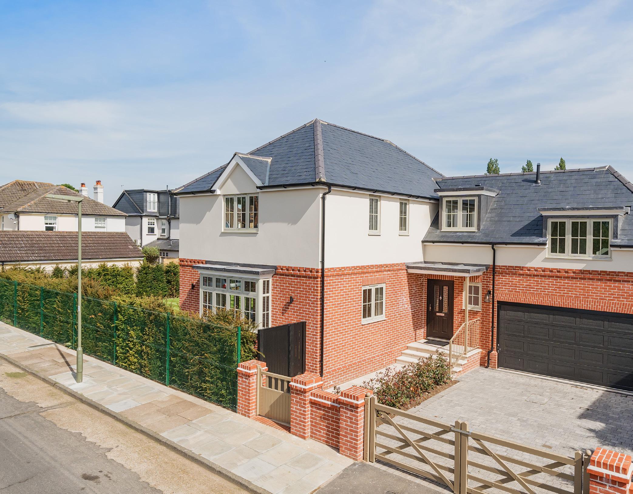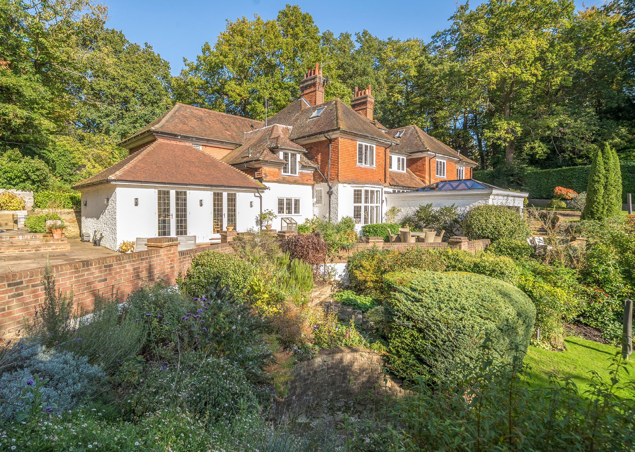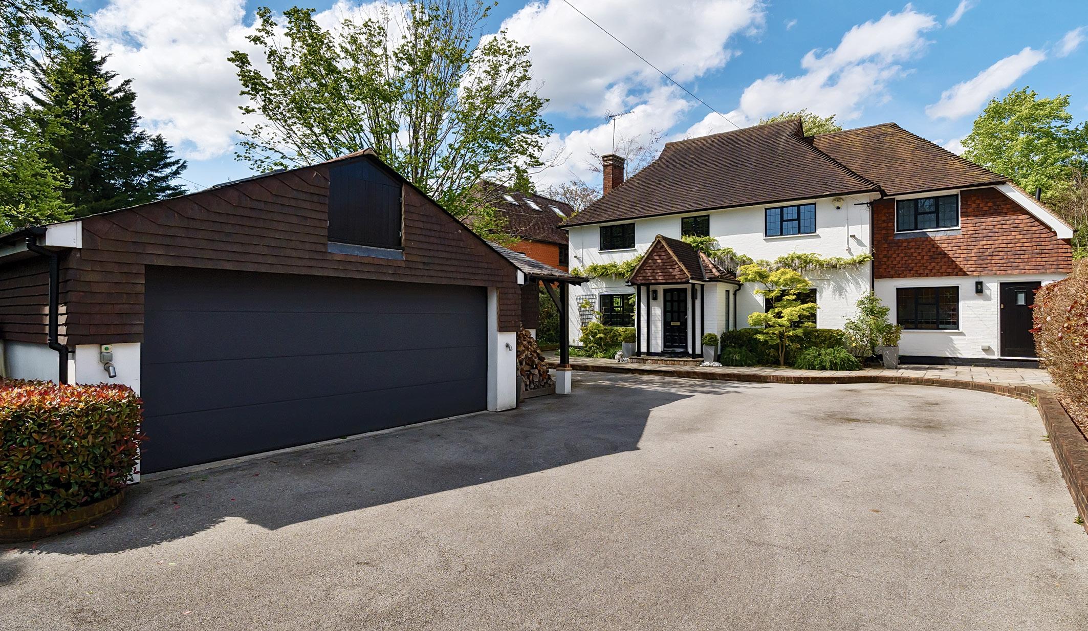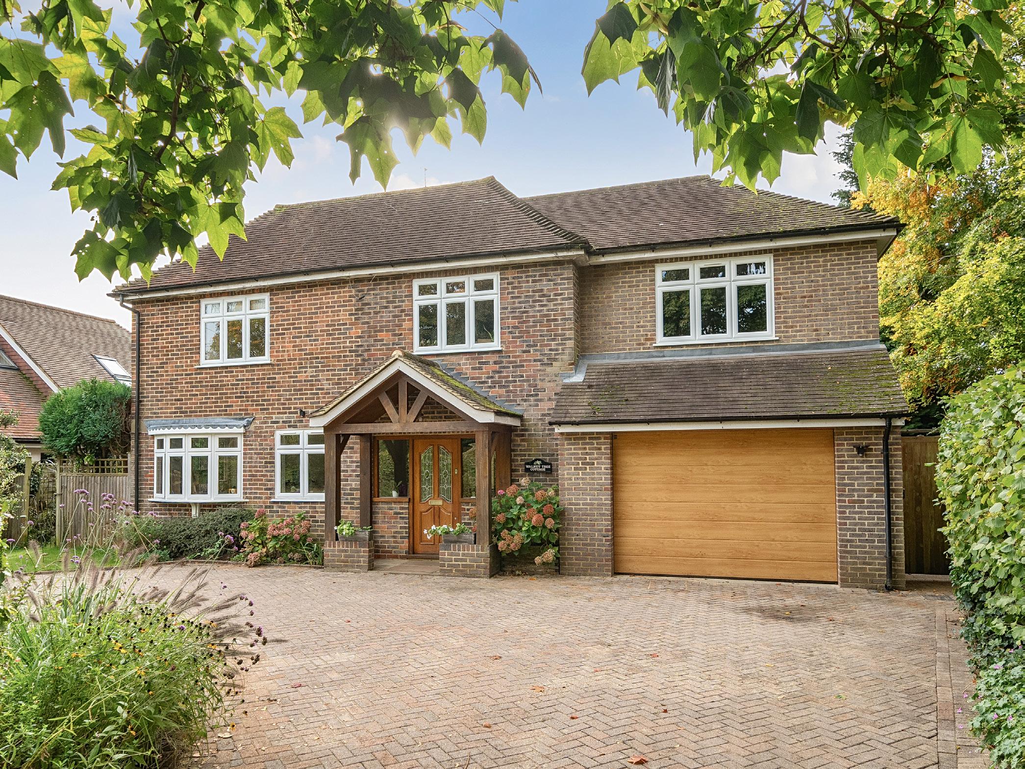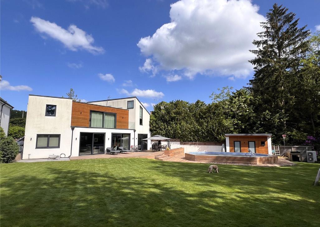 An outstanding modern home tucked away in a peaceful setting, with a large south-west facing rear garden and offering comfortably over 5,000 sq ft on a plot measuring just shy of half an acre. Situated approximately a mile from the High Street as well as popular schools, the house is an ideal family buy. Inside the accommodation is generous and is further increased by two large garden studios, ideal for home working or as a home gym.