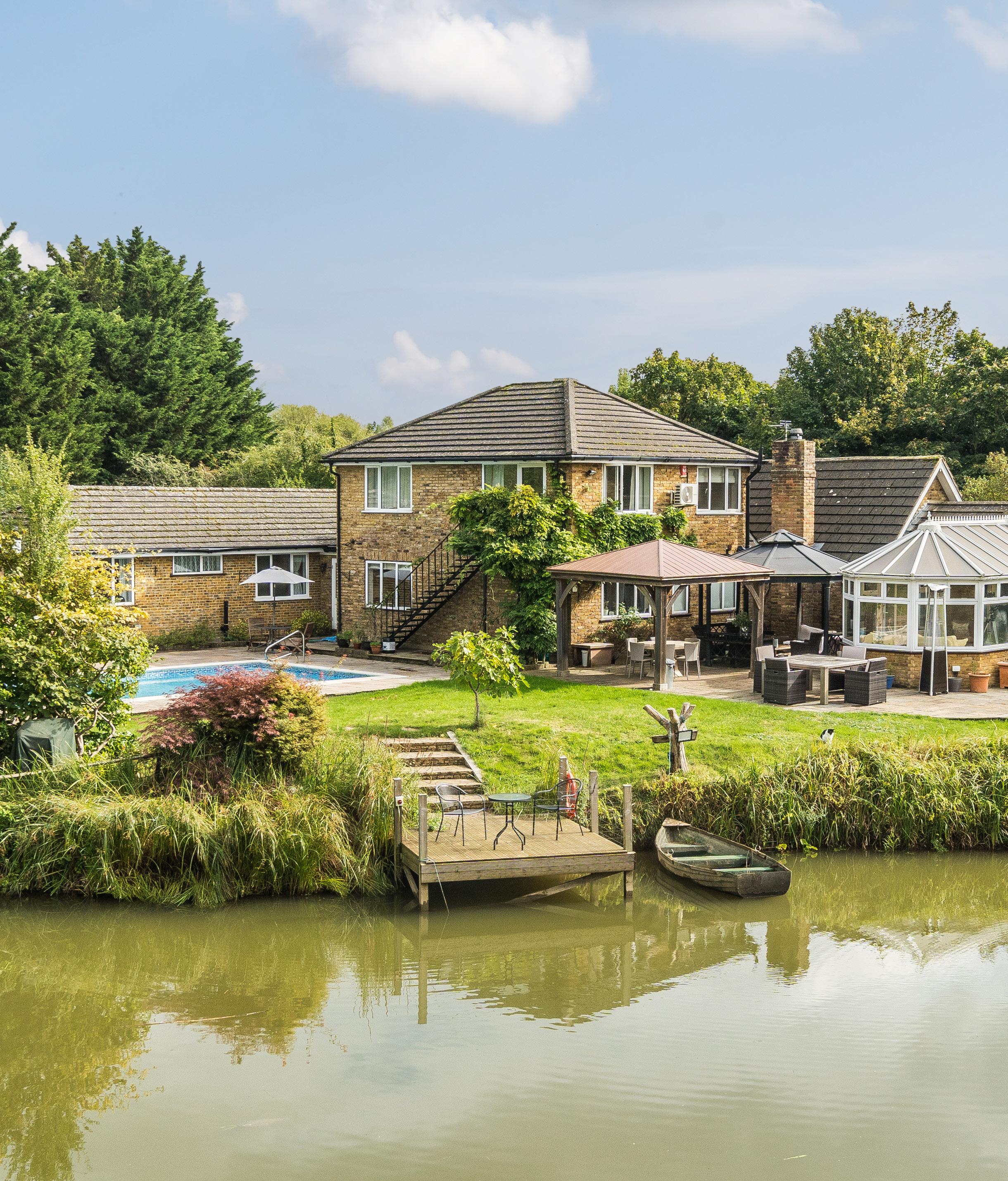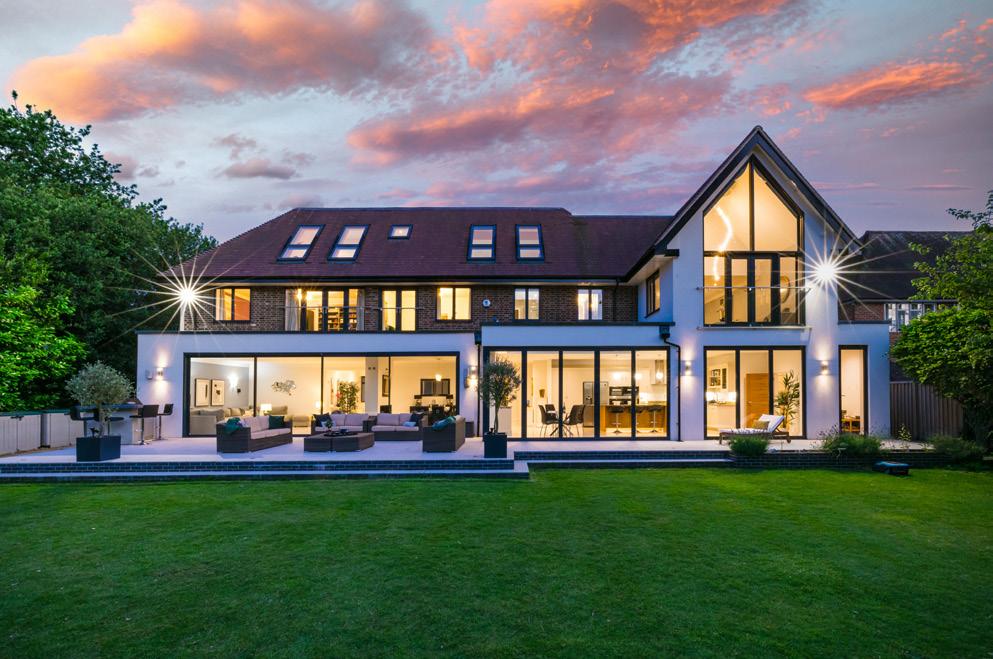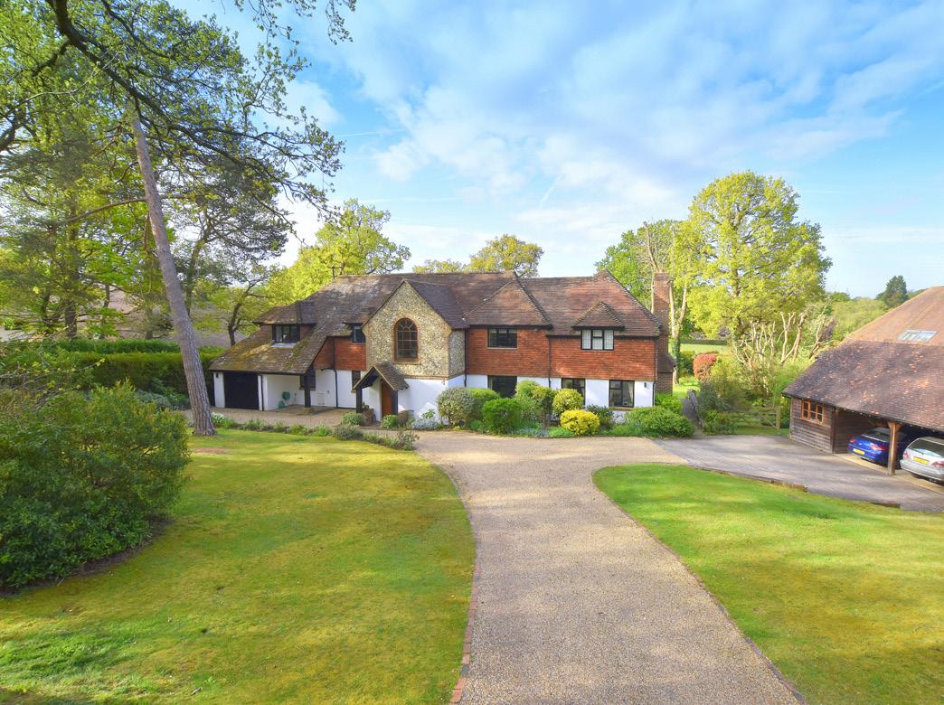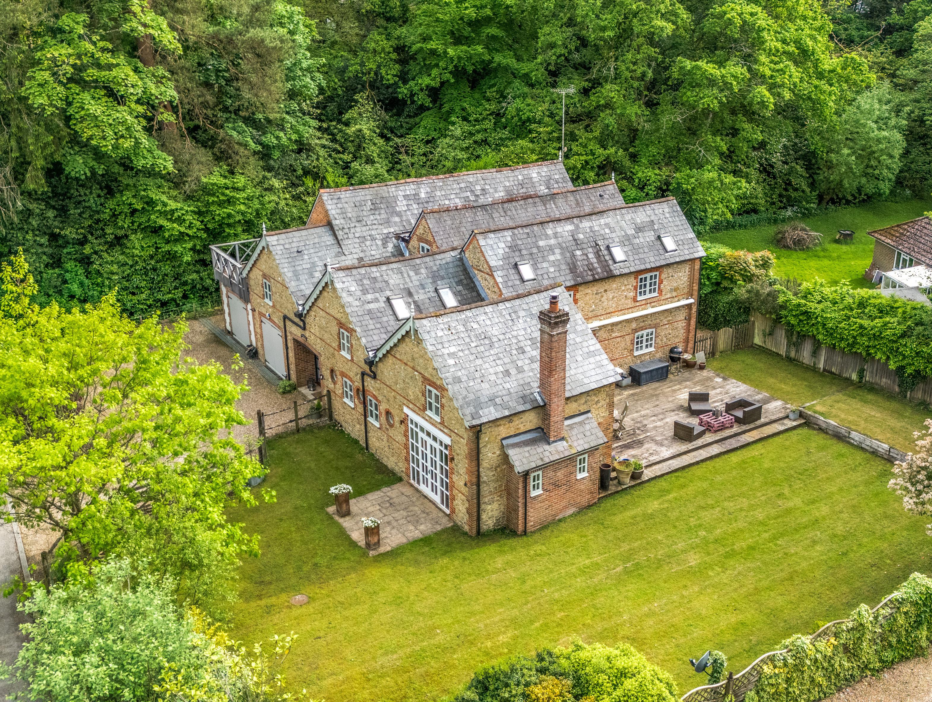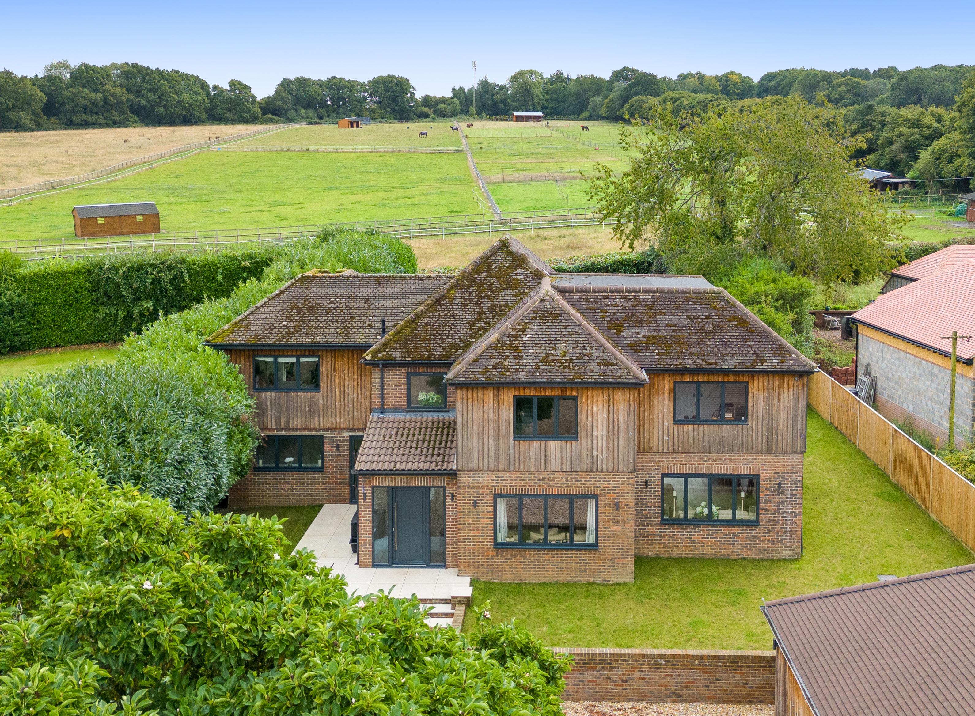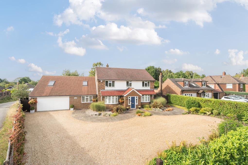 An outstanding modern home tucked away in a peaceful setting, with a large south-west facing rear garden and offering comfortably over 5,000 sq ft on a plot measuring just shy of half an acre. Situated approximately a mile from the High Street as well as popular schools, the house is an ideal family buy. Inside the accommodation is generous and is further increased by two large garden studios, ideal for home working or as a home gym.