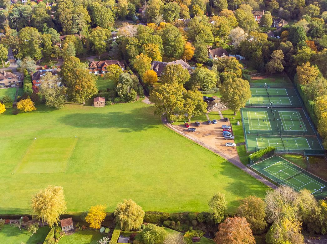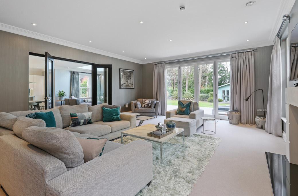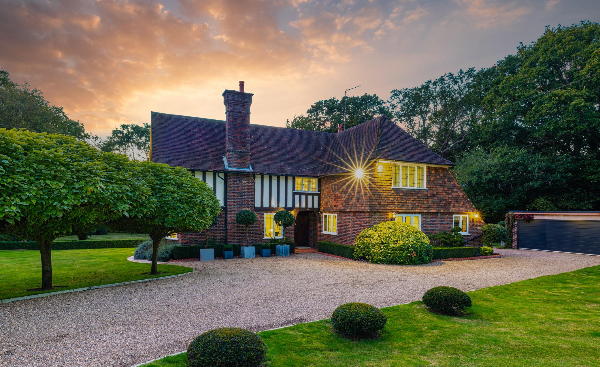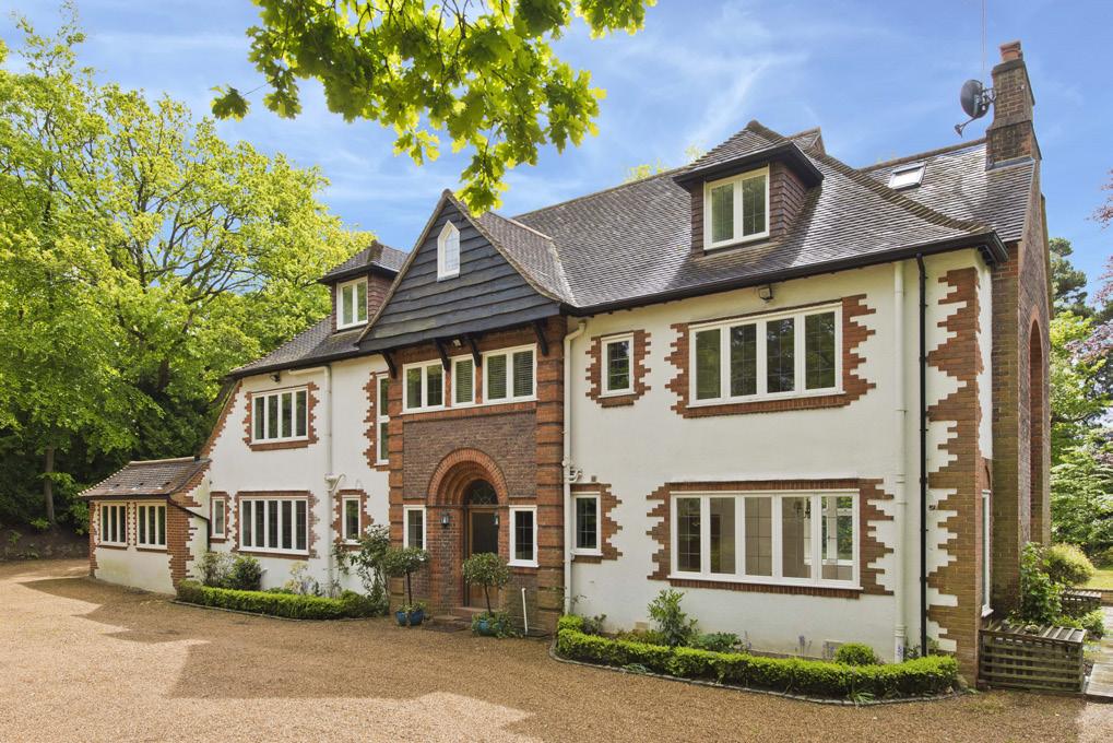 As the double gates gently open, you immediately realise you have arrived at a stunning and elegant family home, individually designed by our clients. Nestled amongst a glorious southerly facing setting with panoramic views across St Georges Hill Golf Course.