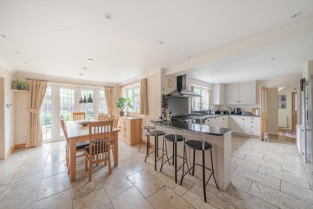 A superb family home set on a private road and within walking distance of Effingham Junction station. The property has been very well maintained and extended with plenty of accommodation including a fabulous all-in-one kitchen, breakfast and family room with bi-folds leading onto the terrace and garden.