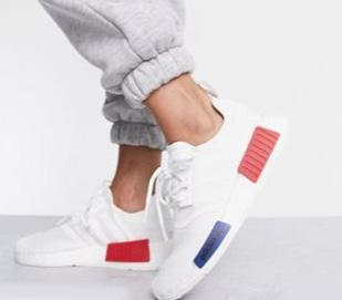 Pick up these fantastic Adidas Originals NMD R1 trainers in white with red and blue tab detail for £120 if Minted or these white Adidas Originals Ozweego trainers with blue and red detail for £70 if Skinted this month.