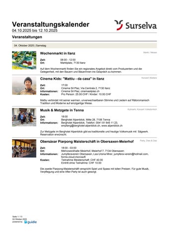 Anmeldung: nicht erforderlich www.waltensburger-meister.ch