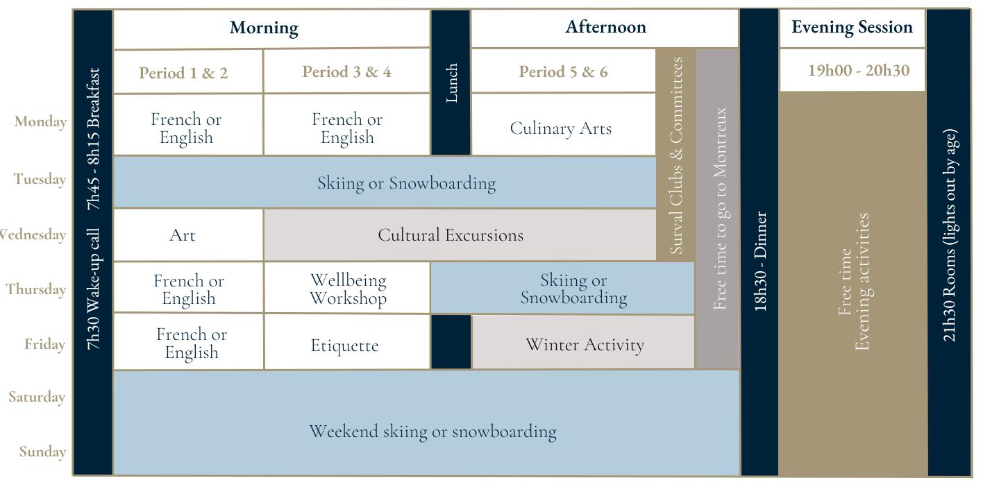 Our Immersion combines both academic and winter activities taking full advantage of our prime location in the beautiful Swiss mountains. Girls who join us become members of our international Surval Montreux community, and are fully integrated into School life, with a multitude of clubs, activities and experiences to enjoy.