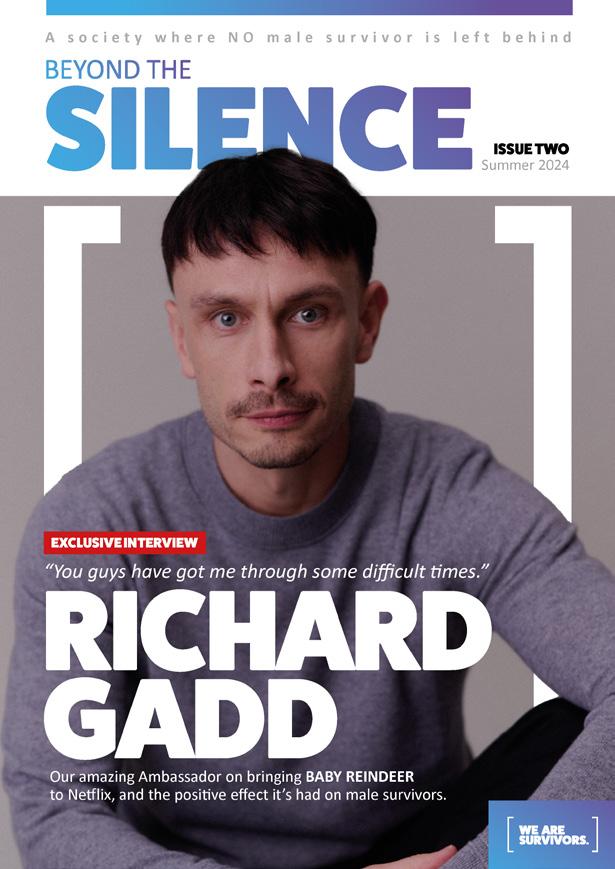 Whilst we’re on the subject of discussion I cannot finish this welcome without saying a huge thank you to our cover star, the uber talented and personal and organisational hero, one of our amazing Ambassadors, Mr Richard Gadd. Whether you have seen it or not, Richard’s now global Netflix smash hit Baby Reindeer has set off an explosion of discussion about male victimhood and sexual violence; inside he talks about his relationship with our groundbreaking organisation. Thank you Richard for all you have done to show your vulnerability.