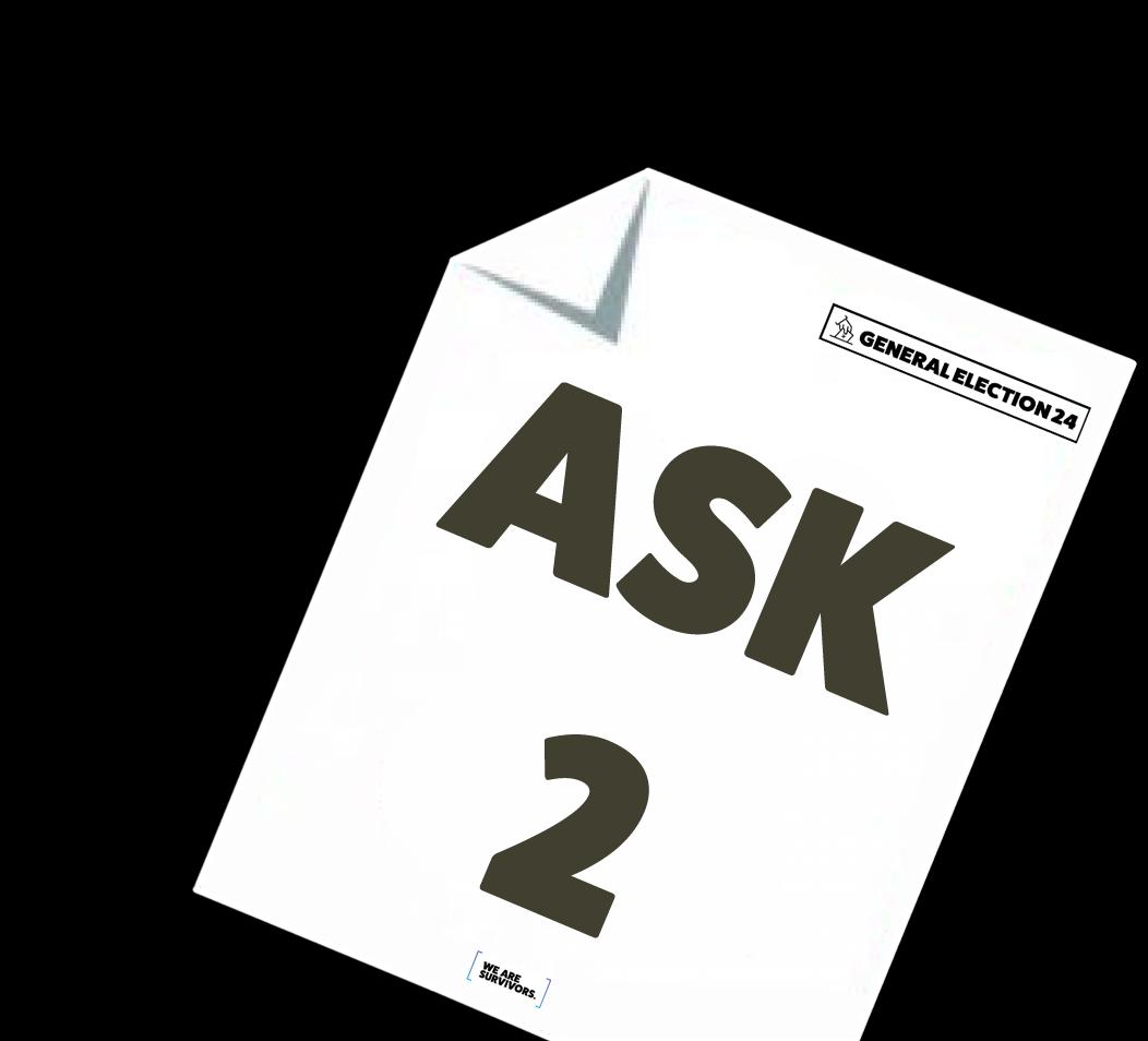 As the UK goes to polls on 4th July 2024, we are asking all poli�cal par�es to ensure that posi�vely tackling the impact of sexual abuse, rape and sexual exploita�on; along with leading a joint effort to prevent harms from occurring in the first place, are a key priority of Government.