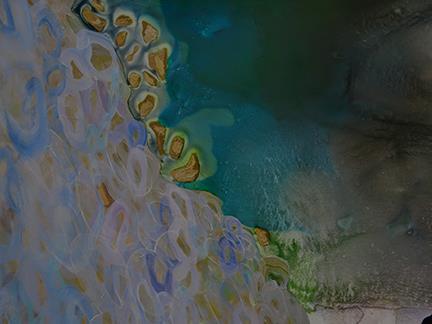 *shapes resisting straight lines and right angles *bounded spaces blues & greens, neutrals