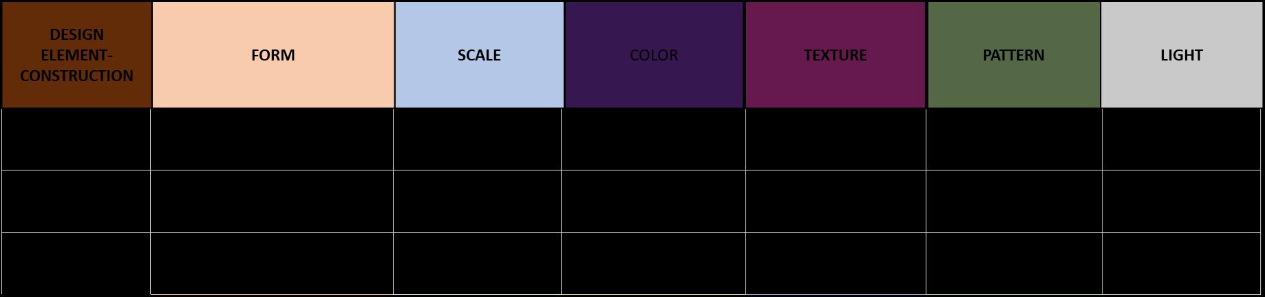 Design ElementPsychological Features FORM SCALE COLOR TEXTURE PATTERN LIGHT
