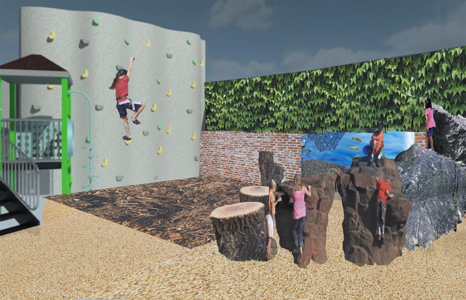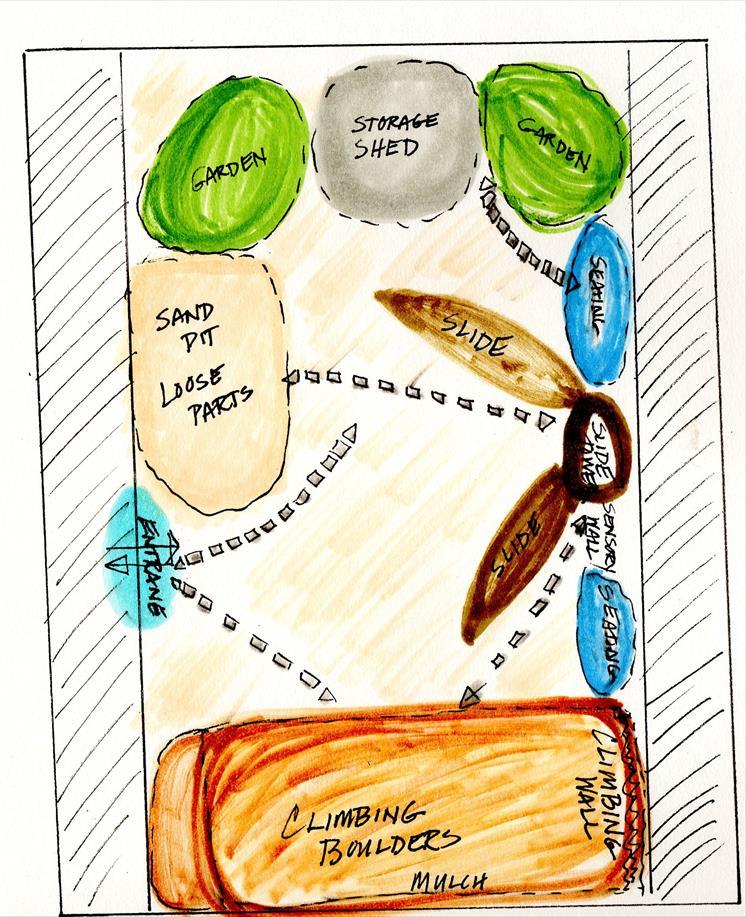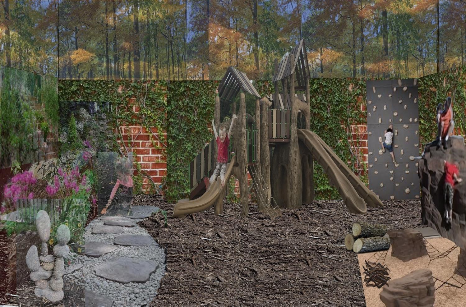 The research studies informed numerous design elements in the outdoor playscape: